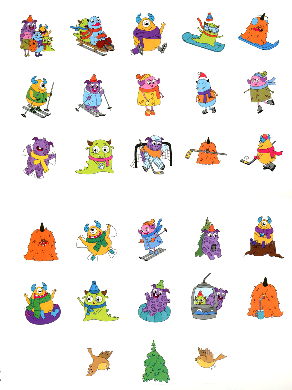 Аннотация: Монстрики и зимние развлечения: книжка-раскраска с наклейками