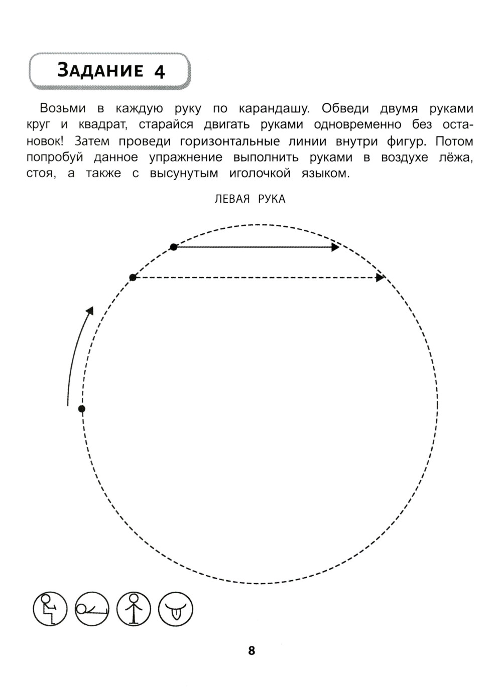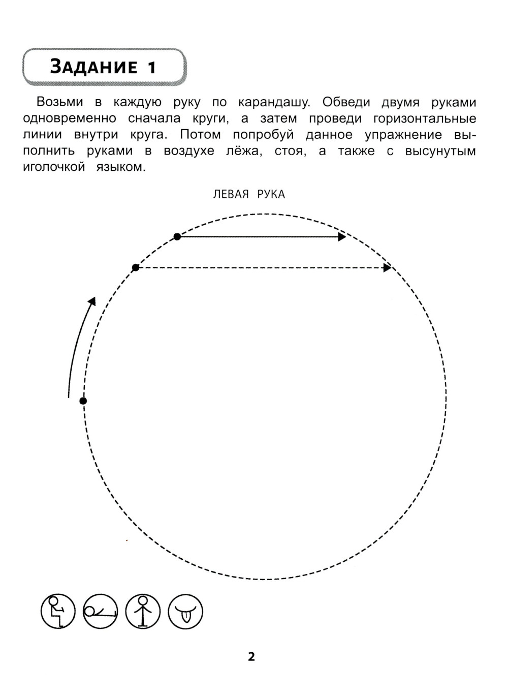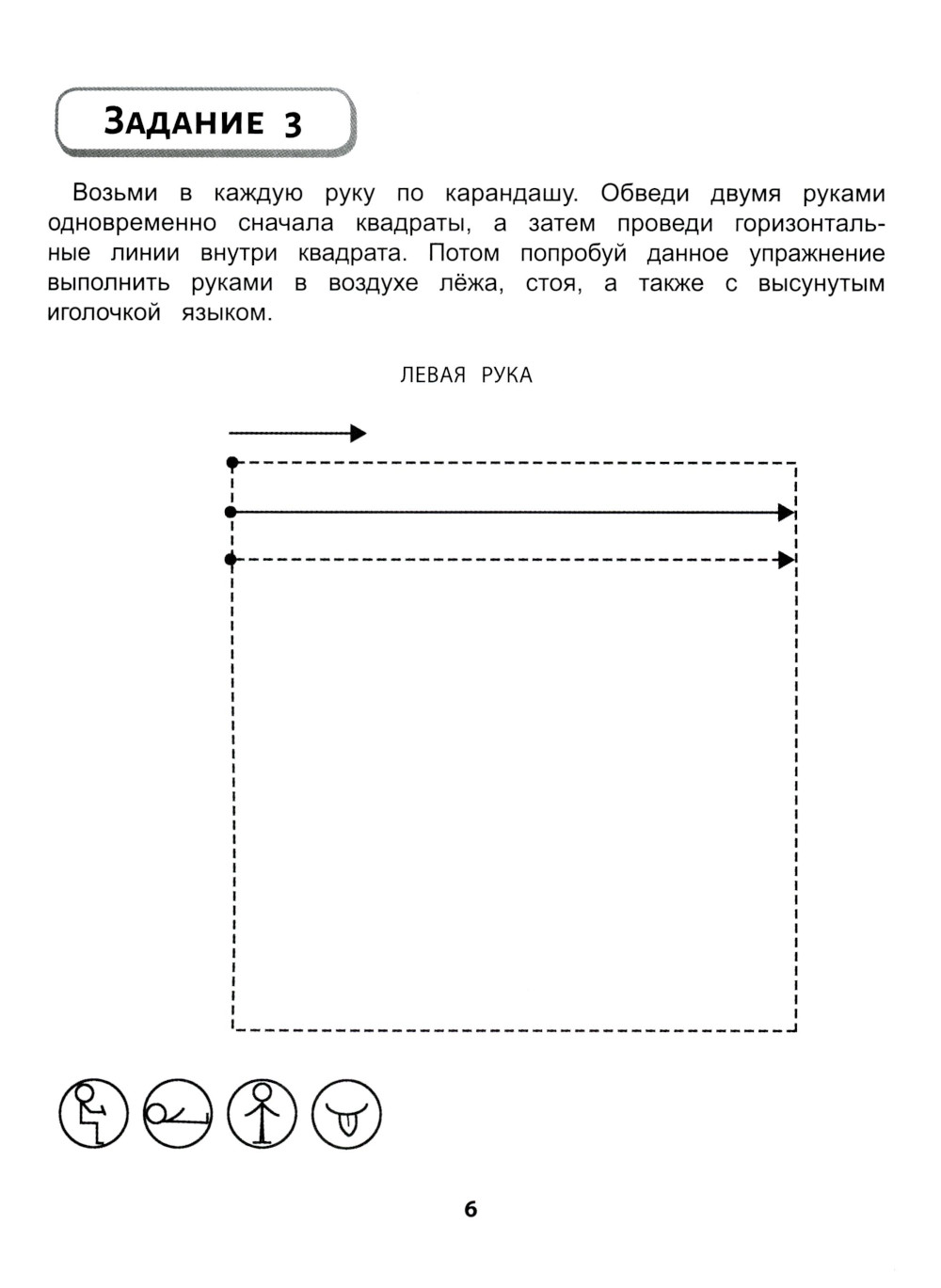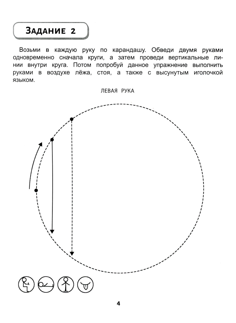 Пособие направлено на развитие межполушарного взаимодействия в двигательной сфере и способствует развитию зрительно-моторной координации, формирует усидчивость, учебную мотивацию, улучшает кистевой и пальцевый праксис, повышает контроль за движениями и саморегуляцию ребёнка. Задания в тетради расположены по мере увеличения сложности, что позволит продвигаться от лёгких заданий к сложным. Любой лист с упражнением можно использовать для выполнения заданий в разных положениях тела, что разнообразит деятельность ребёнка, добавит элемент игры и озорства.| Издательство | Феникс |
