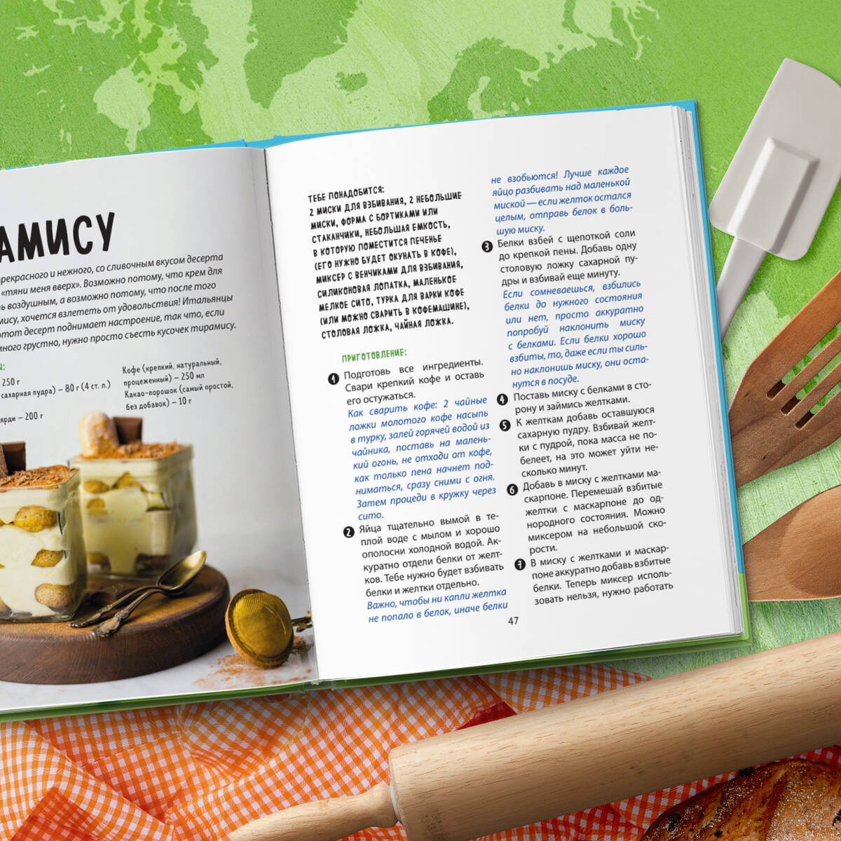 Мария Сурова с детства любила путешествовать. Настолько, что мечтала в мгновение ока переноситься в новые страны. А из поездок вместо сувениров привозила местные рецепты и продукты, ведь что лучше всего сближает людей, как ни обсуждение за общим столом новых вкусов и блюд? Уже давно кухни мира перемешались, как стеклышки в калейдоскопе, но, конечно, в каждой стране есть свои особенные рецепты, и именно они вошли в новую книгу Марии. Вас ждут более 40 рецептов со всех уголков планеты, о которых вы узнаете, если осмелитесь пуститься в большое и увлекательное кулинарное путешествие вместе с маленькими героями Алисой, Славиком, собакой Пату и котом Пирожком. Из Европы в Россию, а через нее - на Кавказ в Грузию, затем в Турцию. Потом в Израиль, а оттуда в Среднюю Азию. Дальше Индия, Китай и Япония. А в конце мы переплывем через Тихий океан в Америку. И везде нас ждут самые вкусные блюда! Поехали!
