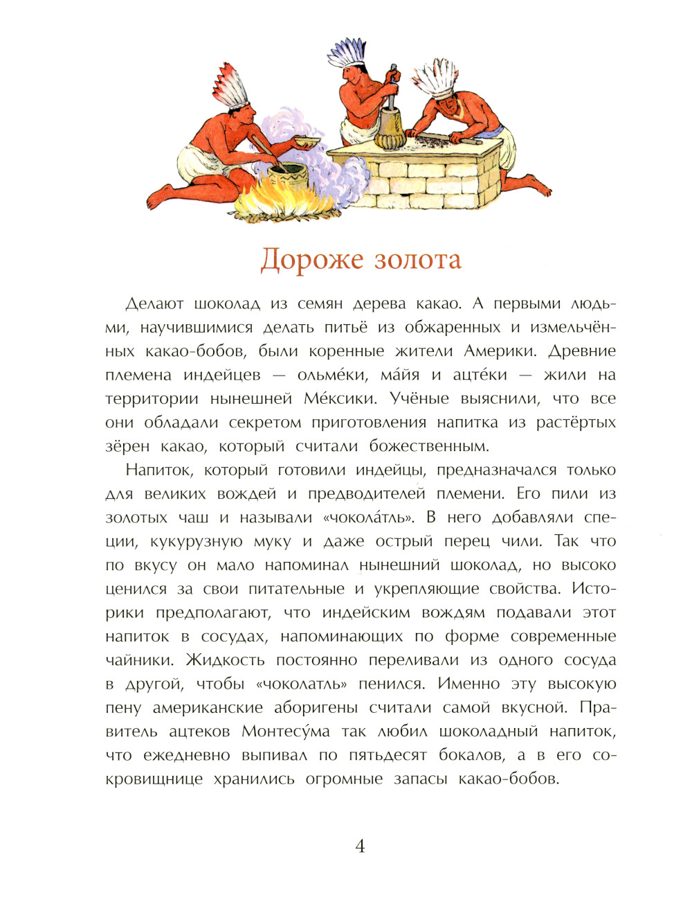 Участники этой истории - и коренные жители Южной Америки, и испанские мореплаватели, которые впервые привезли какао-бобы в Европу, и представители испанской, французской и русской знати. Книга рассказывает о том, как на протяжении веков в разных странах люди открывали для себя рецепты приготовления любимого лакомства.