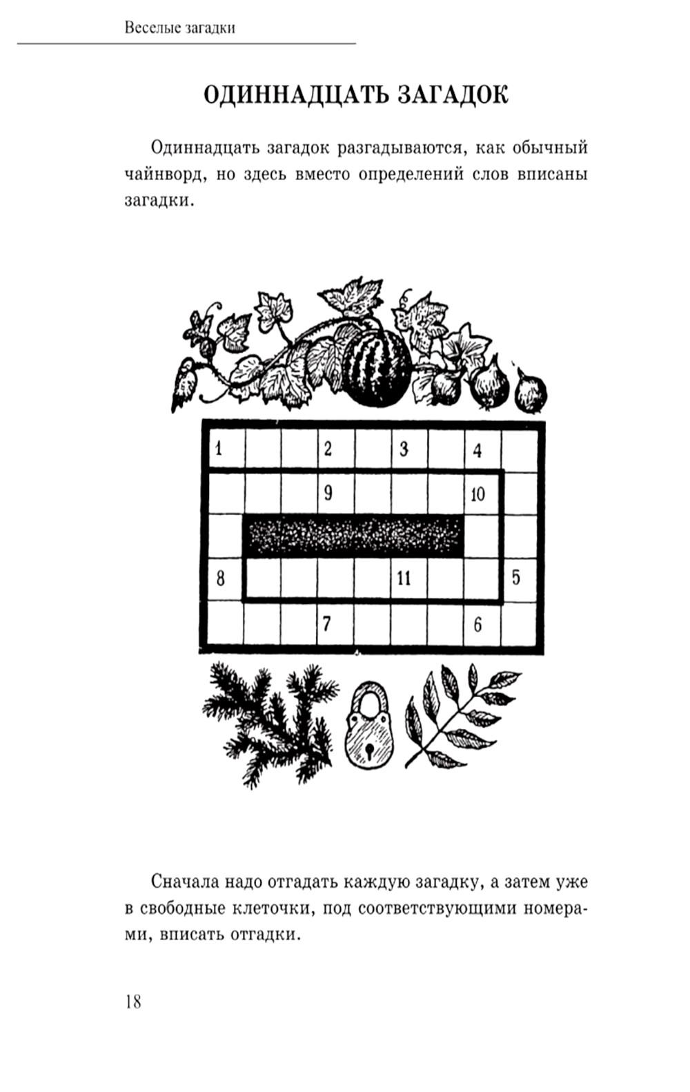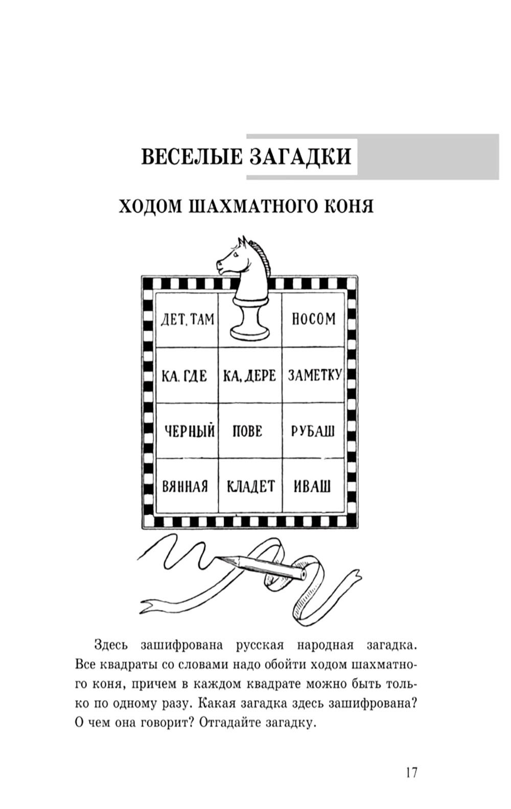 Знаете ли вы, для чего нужны ребусы и головоломки? Они развивают у человека внимательность и логику, тренируют память и речь. При этом ребусы можно решать в любое время и в любом месте, они не требуют особой подготовки и доступны людям всех возрастов. И это не сухая теория от учителя, а занимательная игра. Именно в игре человек развивает различные качества и приобретает необходимые в жизни навыки быстро, легко и с удовольствием. Например, свой словарный запас можно проверить (и пополнить), вспоминая предметы на букву «С», изображенные на картинке. А умение следовать инструкциям и внимание к деталям помогут натренировать задания с буквами, разбросанными в кажущемся беспорядке по странице. Любителей кроссвордов тоже есть чем порадовать: здесь есть кроссворды в форме квадрата, прямоугольника, шестиугольника, звеньев цепи, девятигранника. Данная книга будет прекрасной альтернативой компьютеру и телевизору и поможет организовать интересный и разнообразный досуг для всей семьи.| Издательство | Наше Завтра |