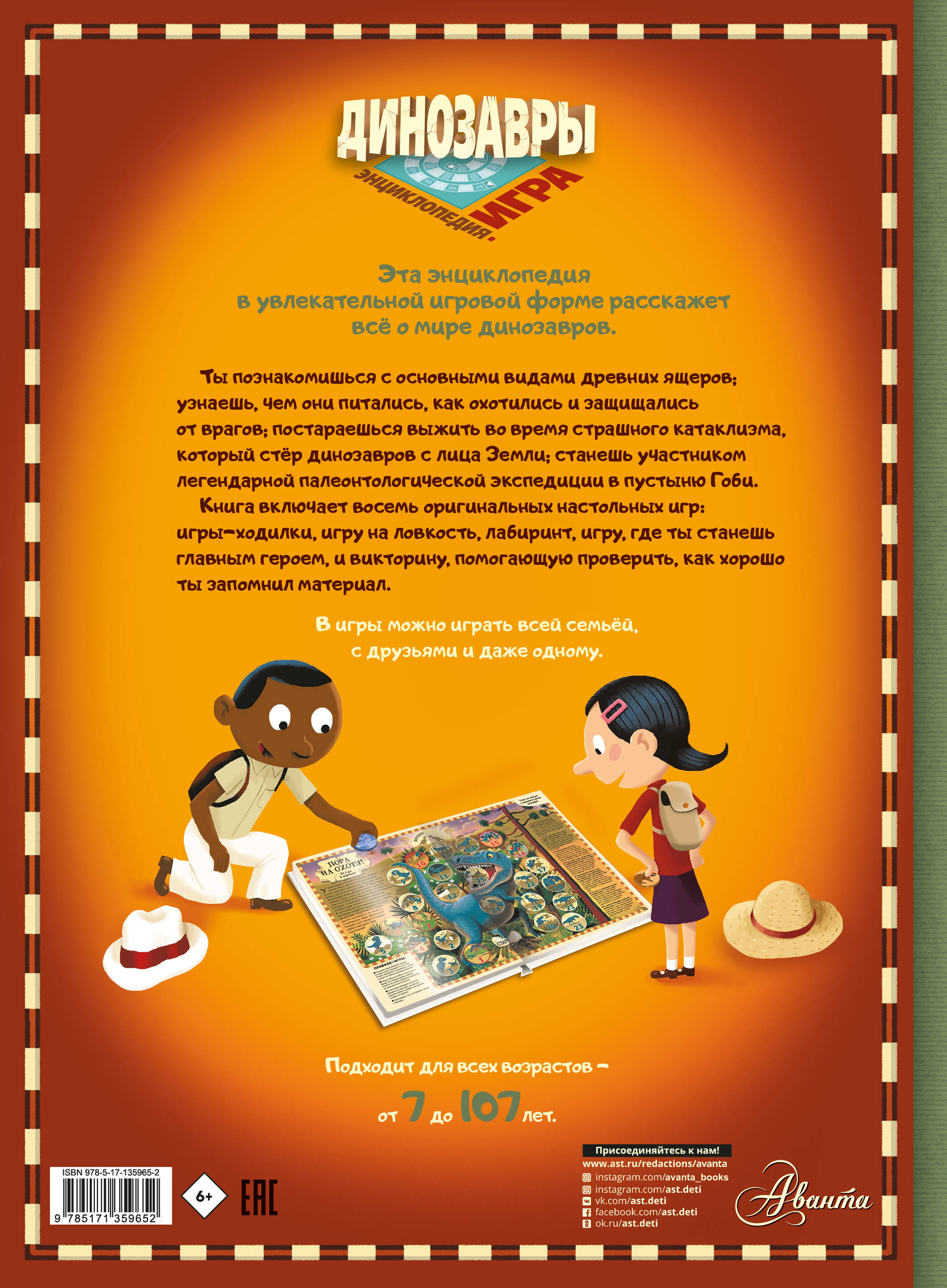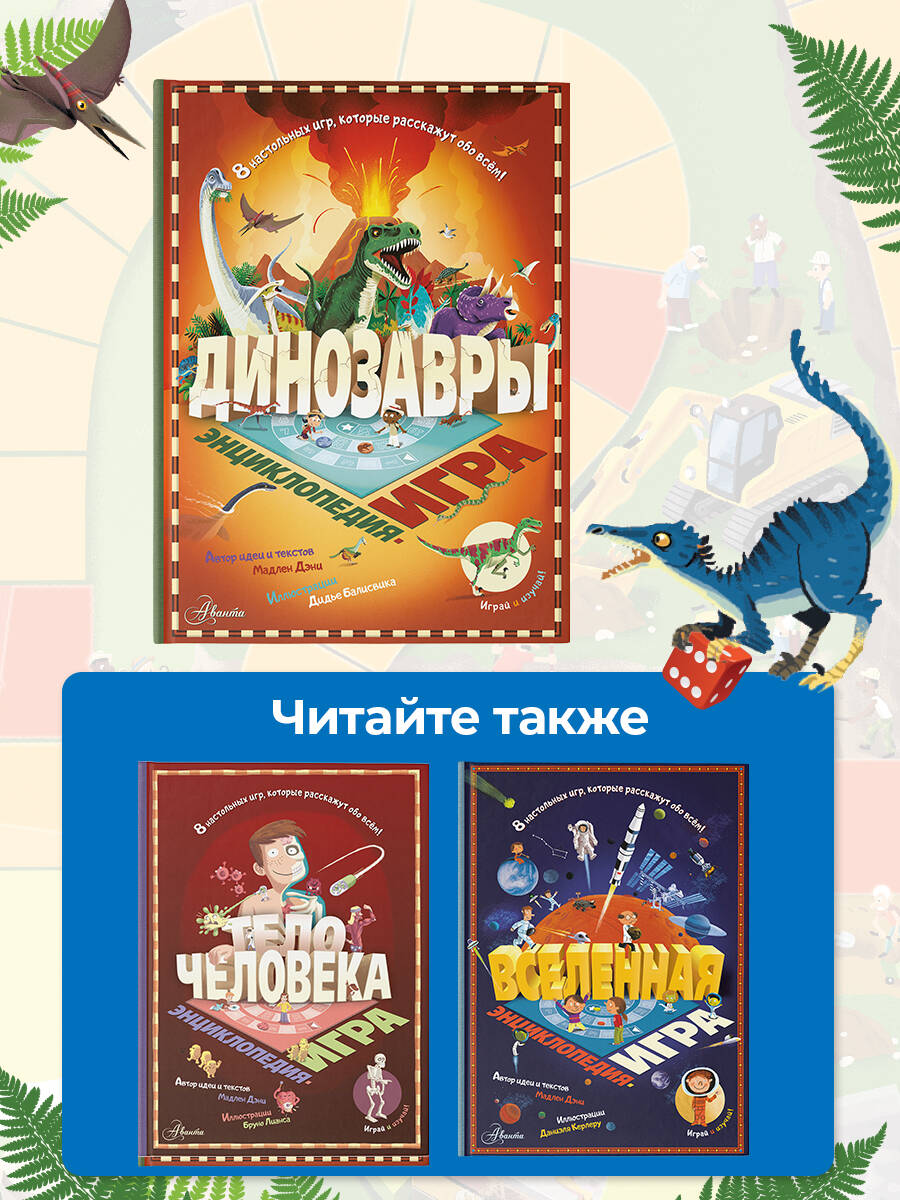 Эта книга расскажет о динозаврах в увлекательной игровой форме. Внутри восемь оригинальных настольных игр: игры-ходилки, игра на ловкость, лабиринт, игра, где ты станешь главным героем. Ты познакомишься с основными видами динозавров; узнаешь, чем они питались, как охотились и защищались от врагов; постараешься выжить во время страшного катаклизма, который стёр динозавров с лица Земли; станешь участником легендарной палеонтологической экспедиции в пустыню Гоби. 8 игровых полей, фишки и кубик в одной книге! Удобно носить с собой. Можно играть всей семьёй, с друзьями и даже одному. Для младшего школьного возраста.| Издательство | ИЗДАТЕЛЬСТВО "АСТ" |