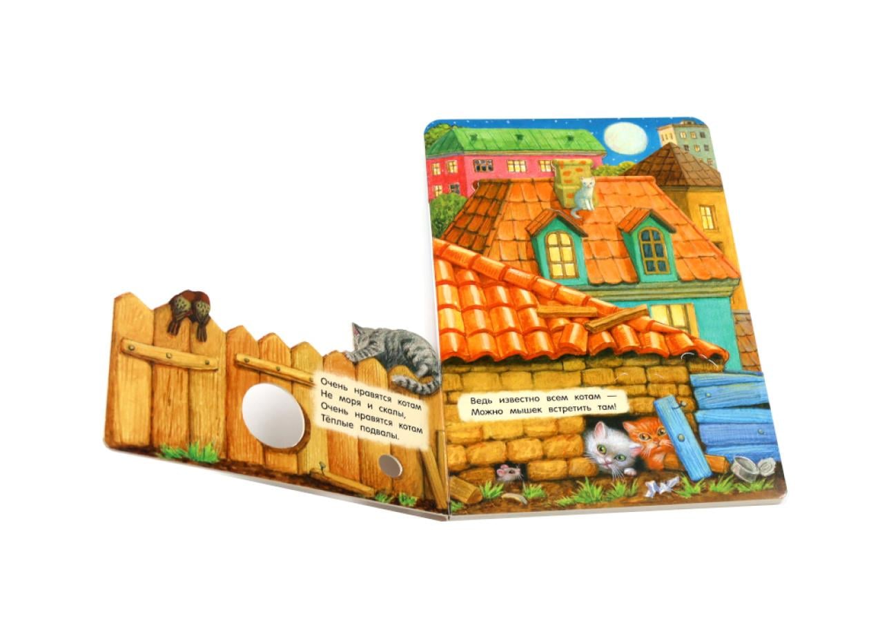 Чудесный авторский проект художницы Ксении Павловой! Это не просто книга-игрушка - это целый город, а на каждой странице здесь прячутся кошки и коты: зеленоглазые романтики, полосатые шкодники, пушистые умницы и любители покушать. Ребенок сможет отыскать их всех, а заодно узнает немного о жизни и повадках этих обаятельных, но независимых животных. Поиграй с котами в прятки! Загляни в теплые уютные дома и на черепичные крыши, в подвалы и чердачные окошки, погуляй по кошачьему городу и отыщи всех его обитателей. Стихи Дарьи Герасимовой.