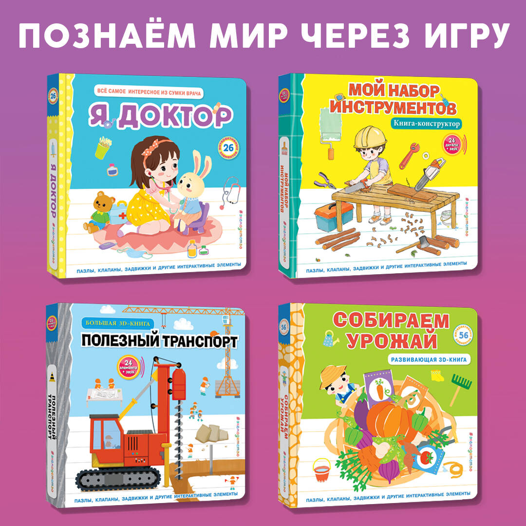 26 интерактивных элементов в одной книге-развивашке! Пазлы, клапаны, задвижки, которые можно двигать, крутить, вынимать из книжки. Только безопасные материалы, без звукового модуля и батареек. Играем в доктора! Невероятно увлекательная 3D-книга для детей - на каждом развороте расположены интерактивные элементы, которые выглядят и работают как настоящие медицинские инструменты. Хочешь лечить зверят, как настоящий доктор? Тогда открывай книжку-игрушку, бери разложенные на страничках медицинские инструменты и принимайся за дело! Маленький зайчик заболел. Измерь ему температуру, сделай укол, рентген и ингаляцию, напои лекарством и уложи малыша спать. Все необходимые процедуры ты сможешь выполнить прямо в этой книжке, благодаря подвижным элементам! Похоже, зайчик уже идёт на поправку. Но на последней страничке тебя ждут новые пациенты. Что случилось? Кто следующий? Данная развивающая книга отлично подходит для детей 3-4 лет. Интерактивные элементы помогают в развитии мелкой моторики. Познаём мир вместе!| Издательство | ООО "Издательство "Эксмо" |