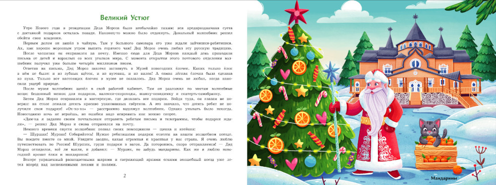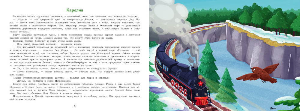 В первое утро нового года Дед Мороз обнаружил, что несколько ребят не получили свои подарки. Что же делать? Нужно срочно всё исправить! Пришлось Дедушке вместе со своими помощниками отправиться на волшебном поезде в путешествие по прекрасной необъятной стране - России. Хочешь узнать, какие приключения ждали на пути наших героев, в каких местах они побывали, что нового узнали, с кем познакомились? Тогда читай сказку, рассматривай картинки и вместе с путешественниками наслаждайся ароматами лимона, мандаринов, северных ягод, дыма, пончиков, хвои, мёда, полевых цветов, роз, лаванды, пряников и эскимо. Для этого надо просто потереть пальчиком самые большие картинки. Эта книга с запахами для детей дошкольного и младшего школьного возраста станет отличным подарком на любой праздник.| Издательство | Стрекоза |