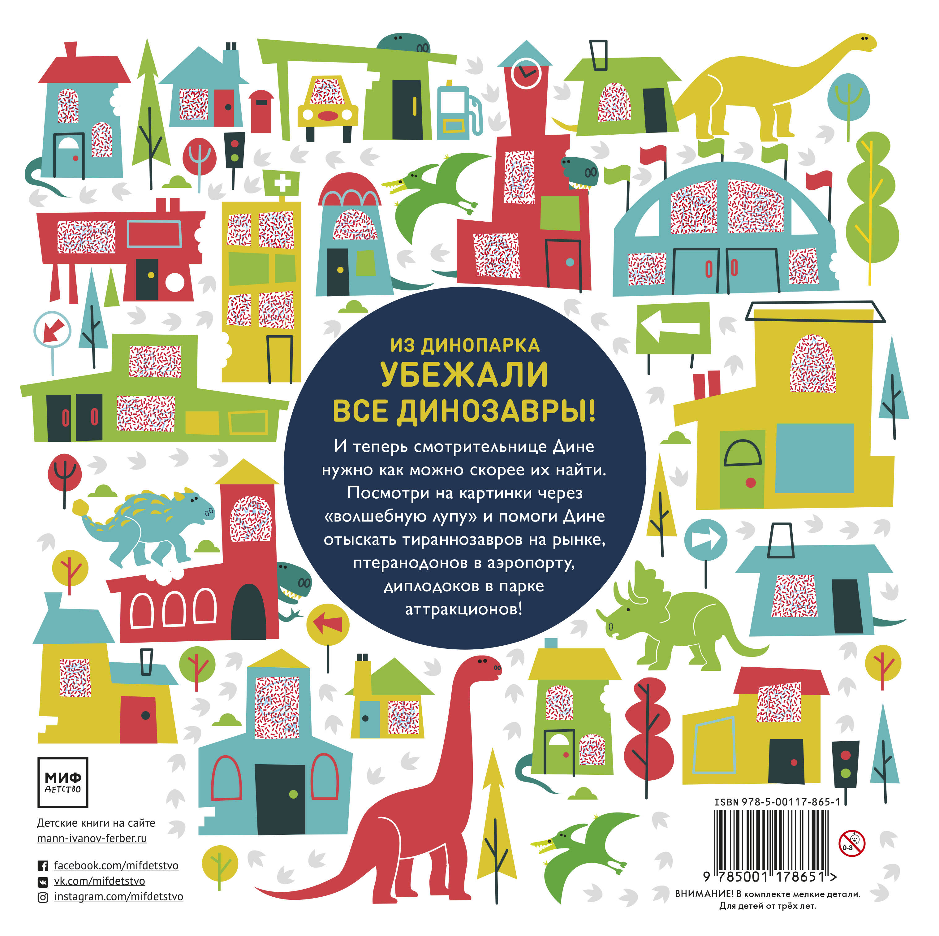 Из динопарка убежади ВСЕ ДИНОЗАВРЫ! И теперь смотрительнице Дине нужно как можно скорее их найти. Посмотри на картинки через "волшебную лупу" и помоги Дине отыскать тираннозавров на рынке, птеранодонов в аэропорту, диплодоков в парке аттракционов!| Издательство | МАНН, ИВАНОВ И ФЕРБЕР ООО |
