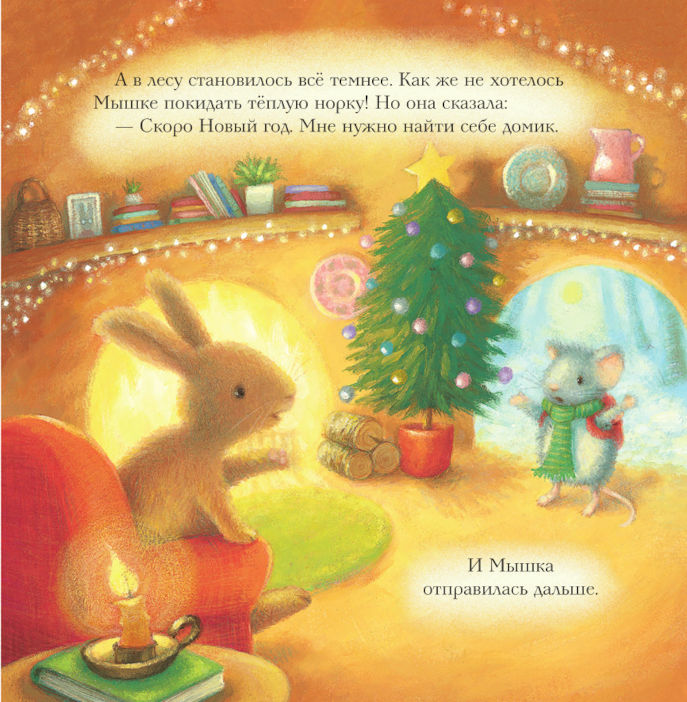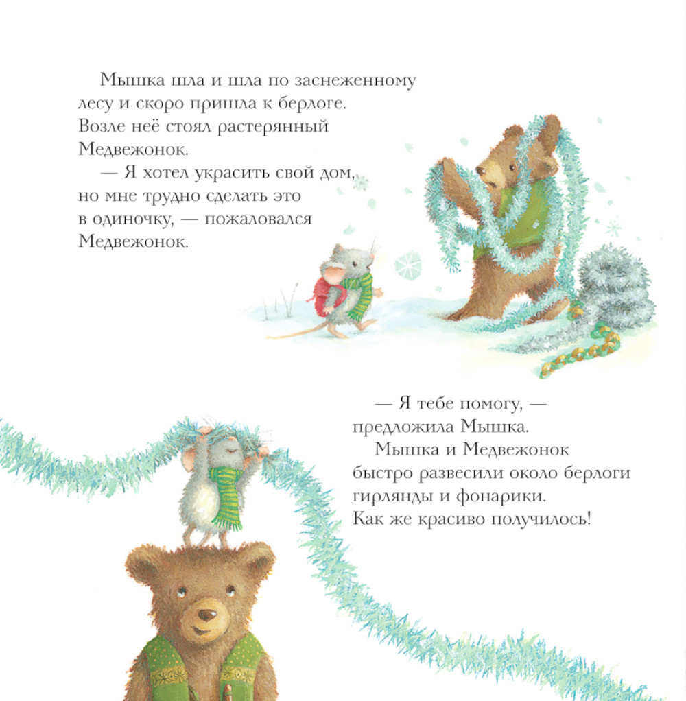 В зимнем лесу все зверята готовятся встретить Новый год. Они украшают свои домики, пекут вкусные пироги и наряжают ёлочки. И только у маленькой Мышки ещё нет своего домика. Кто же ей поможет весело встретить самый чудесный праздник? Добрая «пушистая» история научит маленьких читателей верить в чудеса и творить их своими руками. Ведь так приятно не только получать подарки, но и делать их самому. Как же хорошо, когда все вокруг веселятся и радуются! Сказка прекрасно подходит для первого самостоятельного чтения, а блестящие иллюстрации будет с удовольствием рассматривать вся семья!| Издательство | Эксмо |