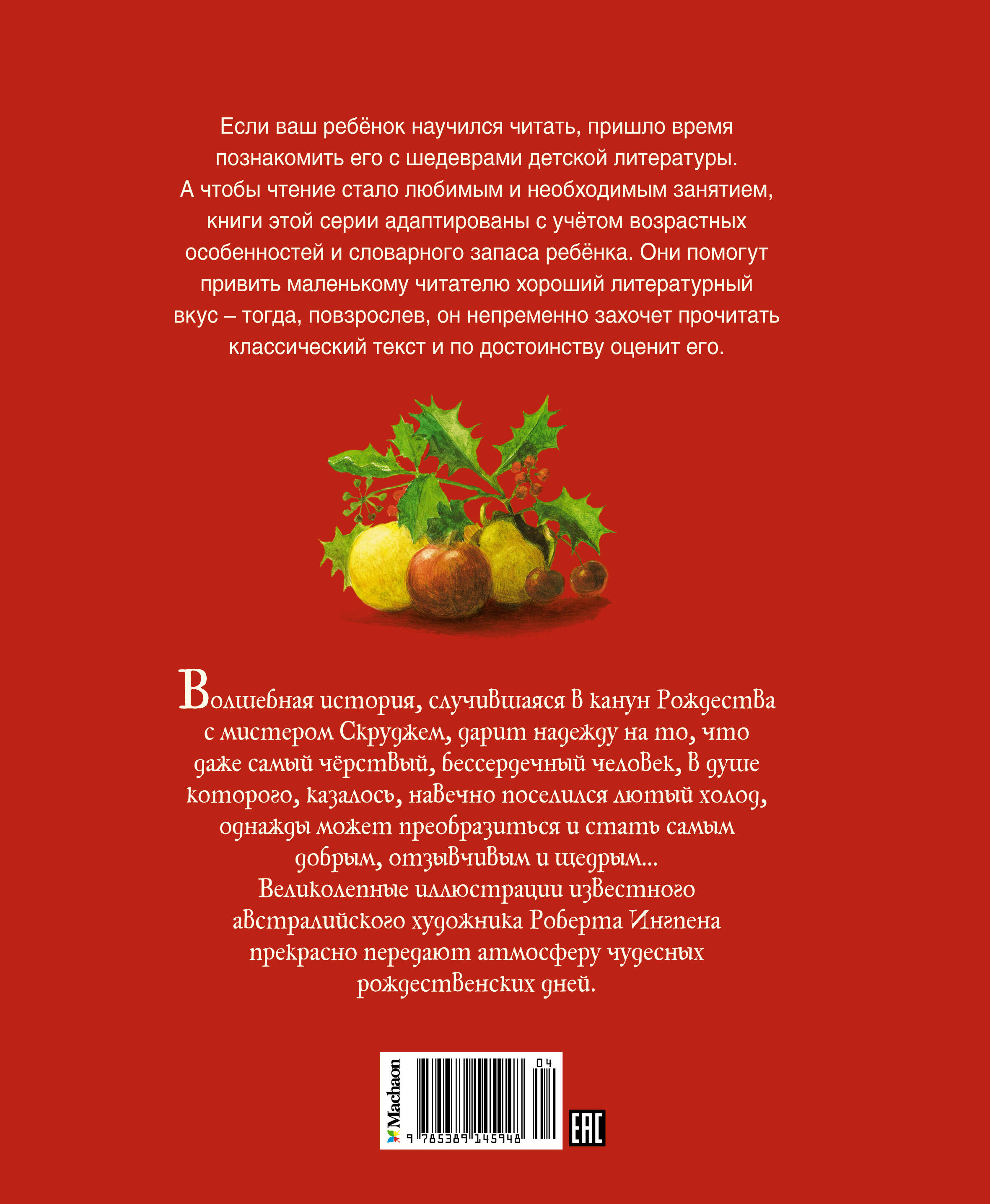 Волшебная история, случившаяся в канун Рождества с мистером Скруджем, дарит надежду на то, что даже самый чёрствый, бессердечный человек, в душе которого, казалось, навечно поселился лютый холод, однажды может преобразиться и стать самым добрым, отзывчивым и щедрым… Великолепные иллюстрации известного австралийского художника Роберта Ингпена прекрасно передают атмосферу чудесных рождественских дней.| Издательство | Азбука-Аттикус Издат.группа ООО |