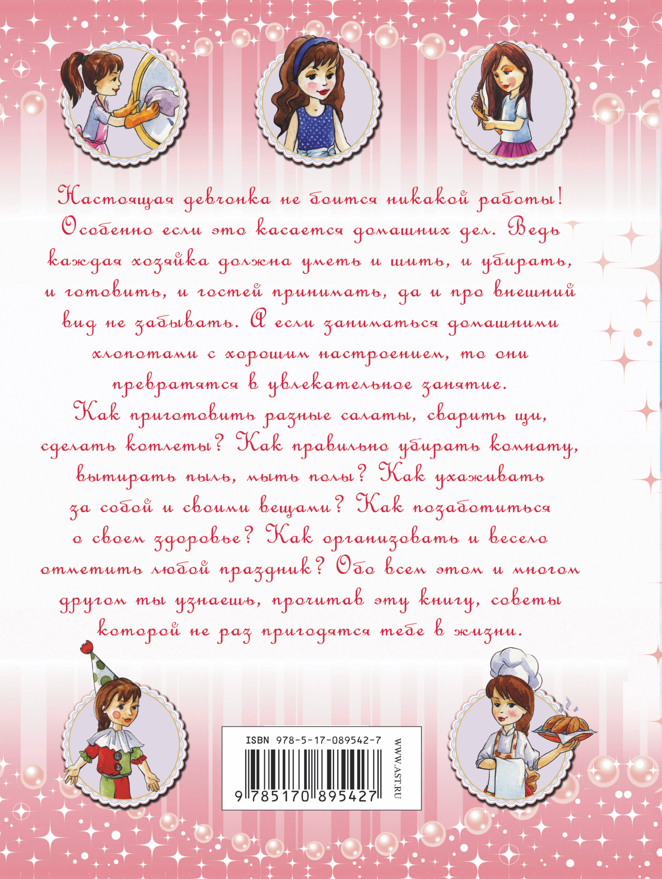 Настоящая девочка не боится никакой работы! Особенно если это касается домашних дел. Ведь каждая хозяйка должна уметь и шить, и убирать, и готовить, и гостьей принимать, да и про внешний вид не забывать. А если заниматься домашними хлопотами с хорошим настроением, то они превратяться в увлекательное занятие. Как приготовить разные салаты, сварить щи, сделать котлеты? Как правильно убирать комнату, вытирать пыль, мыть полы? Как ухаживать за собой и своими вещами? Как позаботиться о своем здоровье? Как организовать и весело отметить любой праздник? Обо всем этом и многом другом ты узнаешь, прочитав эту книгу, советы которой не раз пригодятся тебе в жизни. Для младшего и среднего школьного возраста.| Издательство | Издательство "АСТ" |
