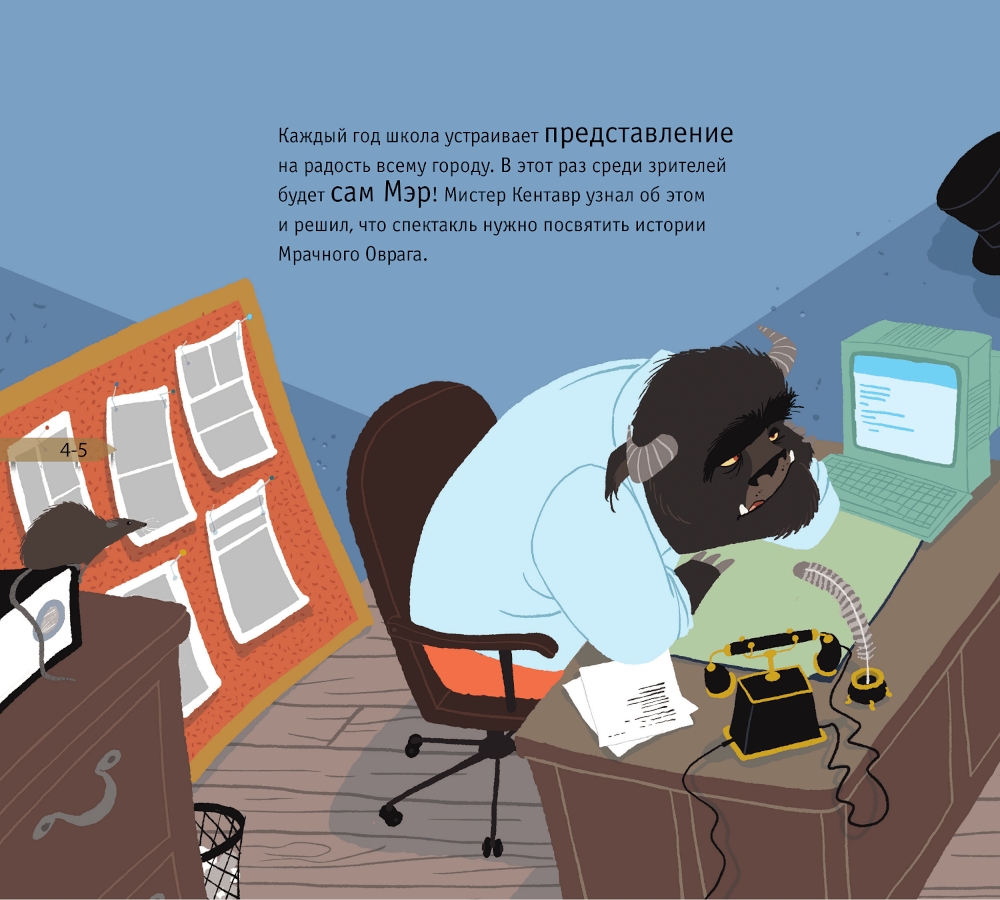 Далеко-далеко, на самом краю земли есть удивительное местечко под названием Мрачный Овраг. Самые разные существа приезжают сюда, чтобы отдать своих детей в местную школу, где уроки ведёт лучший на свете учитель - Мистер Кентавр. Но смогут ли его ученики сплотиться и устроить такое представление, от которого ахнет даже Мэр города, если Грета вечно всех перебивает, Юджин громко рыгает, а Вульфи ковыряется в носу?.. Нашим героям предстоит как следует постараться и усвоить, что хорошие манеры - это не только «спасибо» и «пожалуйста».| Издательство | Фолиант |
