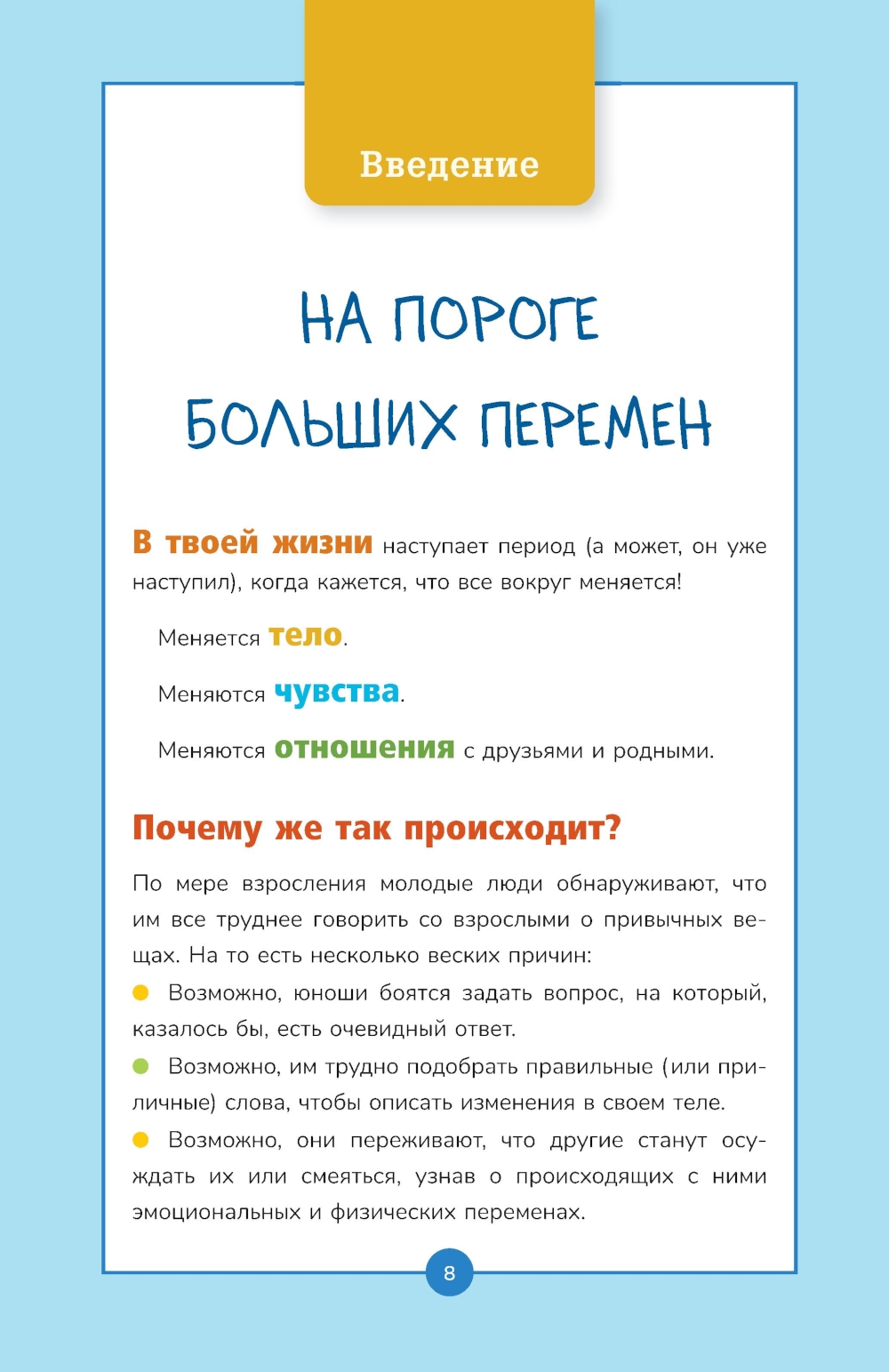 Eсть вопросы о переходном возрасте? Отвечаем! Переходный возраст - особо значимый период в жизни каждого. Вступая в него, очень важно черпать информацию из проверенных источников. То, что ты слышишь от ребят во дворе и модных блогеров, не всегда соответствует действительности. «Книга о мальчиках и для мальчиков» - признанный бестселлер и надежный путеводитель в вопросах взросления.| Издательство | Попурри |