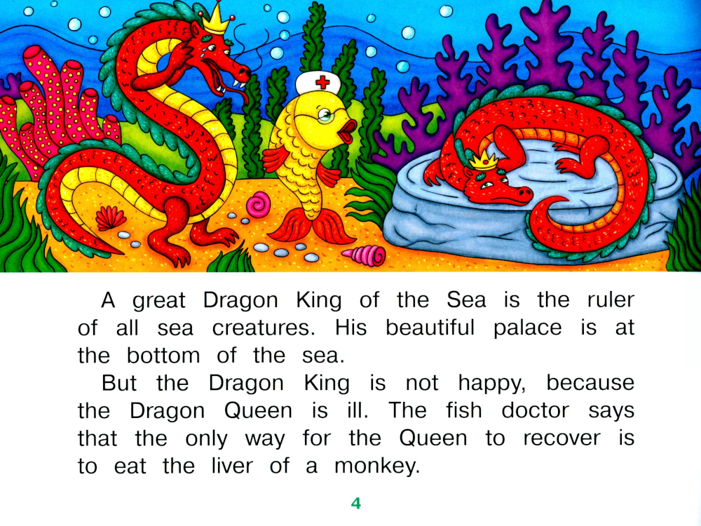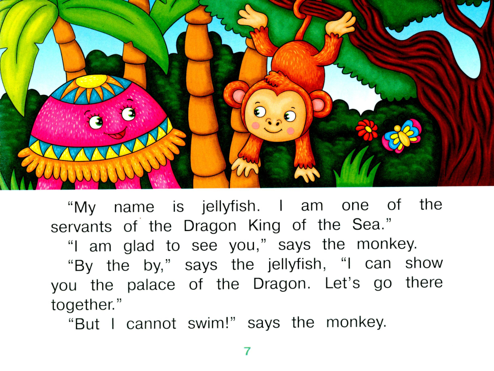 Книга входит в серию иллюстрированных учебных пособий «Читаем вместе». Японская народная сказка о болтливой медузе и хитрой обезьянке адаптирована на английском языке с использованием простой грамматики и лексики для тех, кто только начинает учить язык. Прочитав эту сказку, ребёнок познакомится с прошедшим временем глагола have (had), простым будущим временем (will) и отрицательной формой глагола can (cannot), а также выучит названия некоторых животных. Помимо увлекательной сказки книга содержит полезные и несложные упражнения для развития необходимых языковых навыков и умений. Завершает книгу словарь, где в алфавитном порядке собраны все новые слова с транскрипцией.