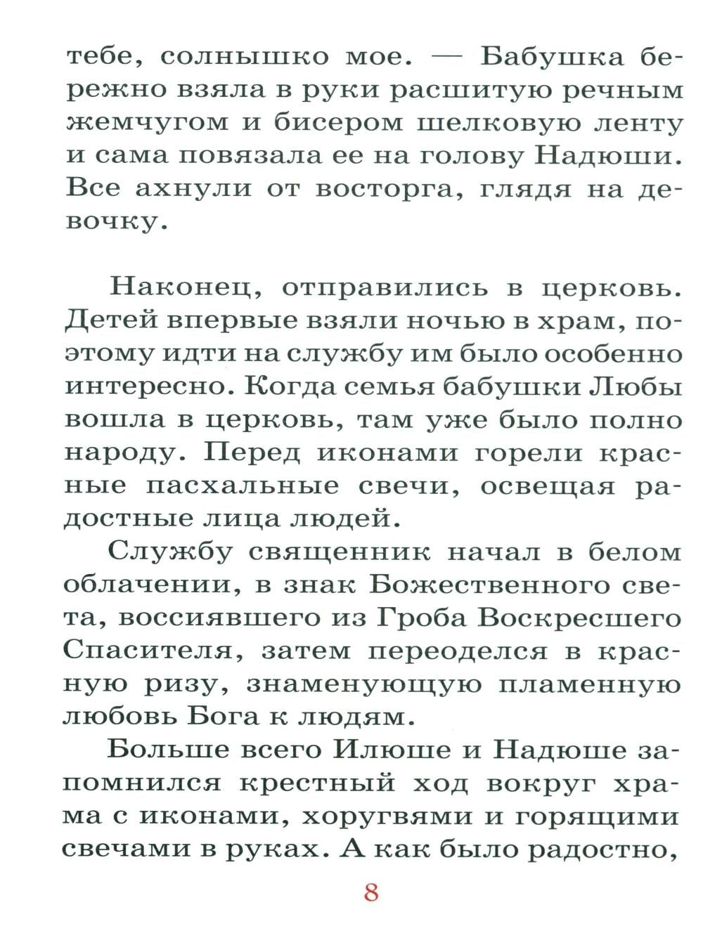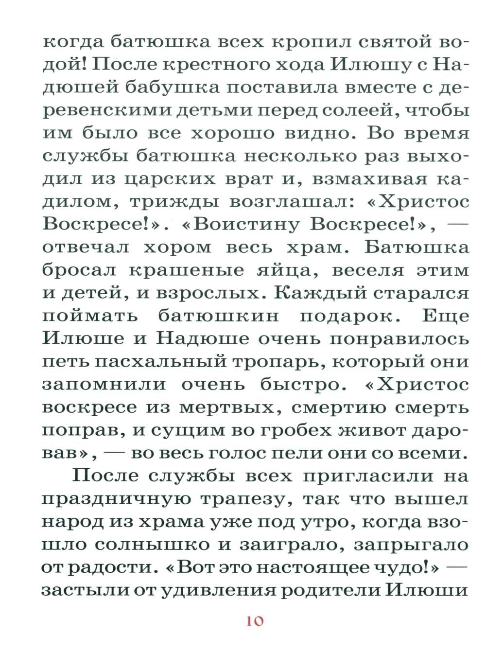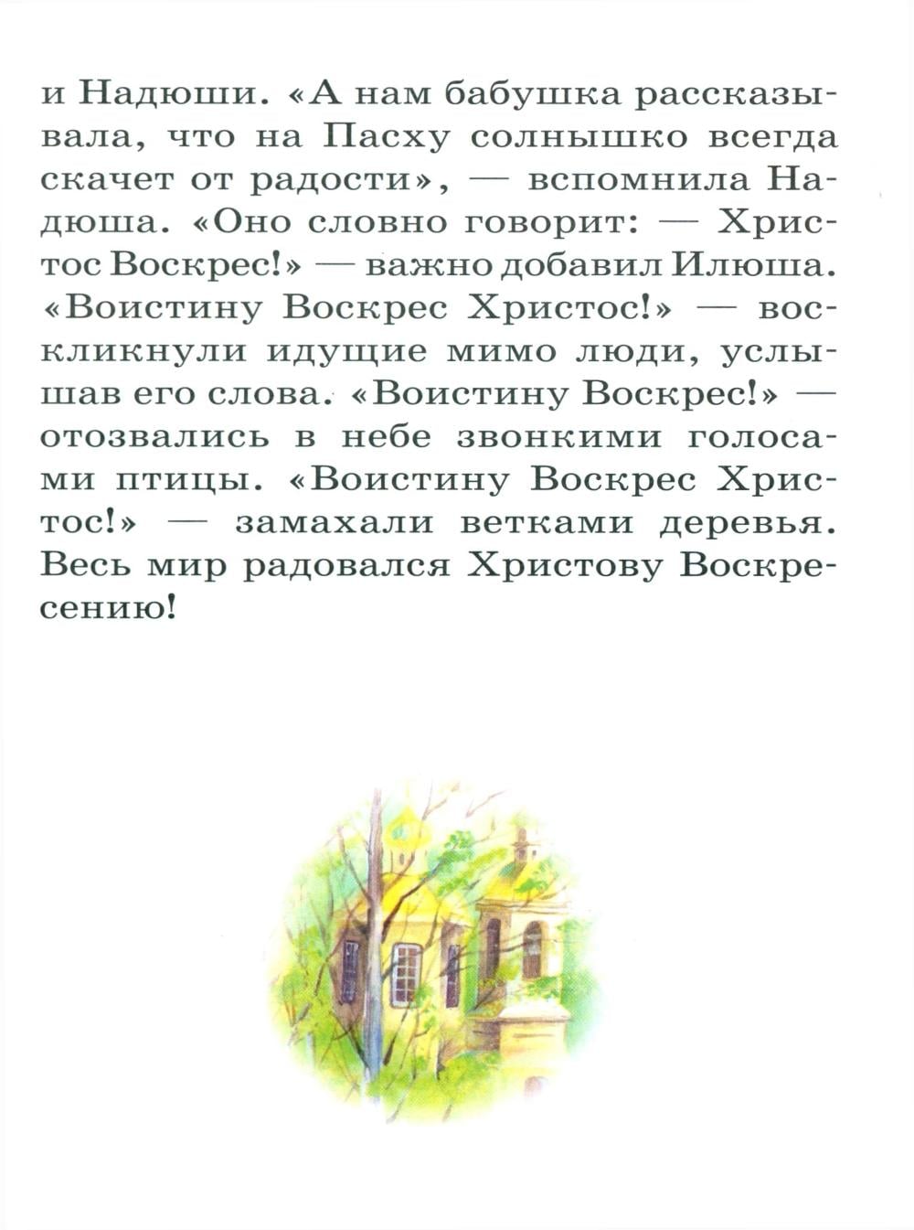 Ирина Сергеевна Рогалева - автор более 56-ти книг для детей, подростков и взрослой аудитории. Член Союза писателей Ленинградской области и СПб. Награждена медалью св. князя Александра Невского за первое место в международном конкурсе детской литературы в 2011 г. По ее произведениям проводятся фестивали, сняты мультфильмы, поставлено множество спектаклей, рассказы и сказки можно услышать на ТВ каналах «Союз», «Спас» и православных радиоканалах. Также со сказками и рассказами работают детские психологи и школьные учителя. Вашему вниманию предлагается новая книга для детей и взрослых о Светлом Празднике Пасхи. Христос Воскресе!| Издательство | Воскресение** |