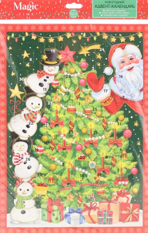 Новогодний плакат "Волшебство" с окошками-сюрпризами - это чудесный способ скрасить дни в ожидании праздника себе и близким. Плакат содержит 31 окошко на каждый день, в котором кроются увлекательные задания для всей семьи. Это идеальное времяпрепровождения для себя, детей и друзей! Плакат выполнен из картона размером 41,5х29,5 см.