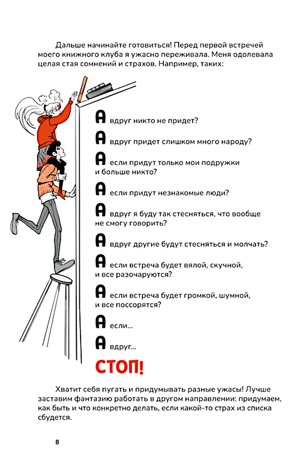 Книжный клуб - это маленький мир, где любят читать и говорить о прочитанном, умеют выражать свое мнение и слышать других, размышлять и веселиться. Книга Зульфии Абишовой рассказывает подросткам, как создать и вести собственный книжный клуб. Как собрать аудиторию? Где проводить встречи? Кто решает, какие книги обсуждать в клубе? Откуда взять логотип, стоит ли вводить оплату, что делать, если участники заскучали? В книге есть именно то, что нужно начинающему организатору: понятные, практичные и современные ответы на все эти вопросы, а еще яркая и лаконичная подача материала, юмор и примеры из опыта. Чего в книге нет: общих фраз, заумных формулировок и нереалистичных решений.