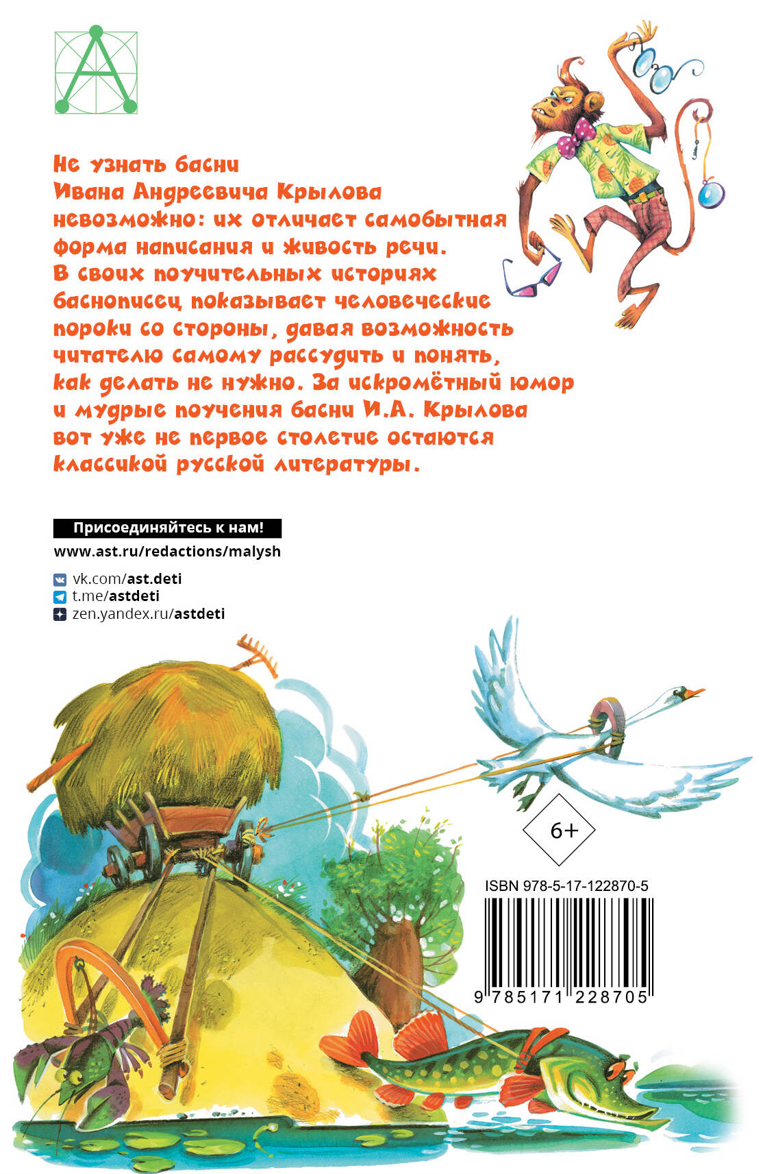Иван Андреевич Крылов (1769 - 1844) - русский поэт, баснописец, издатель и драматург. В книгу вошли самые известные басни, среди которых "Стрекоза и Муравей", "Слон и Моська", "Ворона и Лисица", "Квартет", "Мартышка и Очки" и другие. Свойственные людям недостатки Иван Крылов отображал на животных, которые стали главными героями произведений и заговорили на человеческом языке, а благодаря таланту автора многие народные выражения стали крылатыми: так мастерски поэт вплетал их в басенные строки. Иллюстрации художника Ильи Савченкова. Для среднего школьного возраста.| Издательство | Издательство "АСТ" |