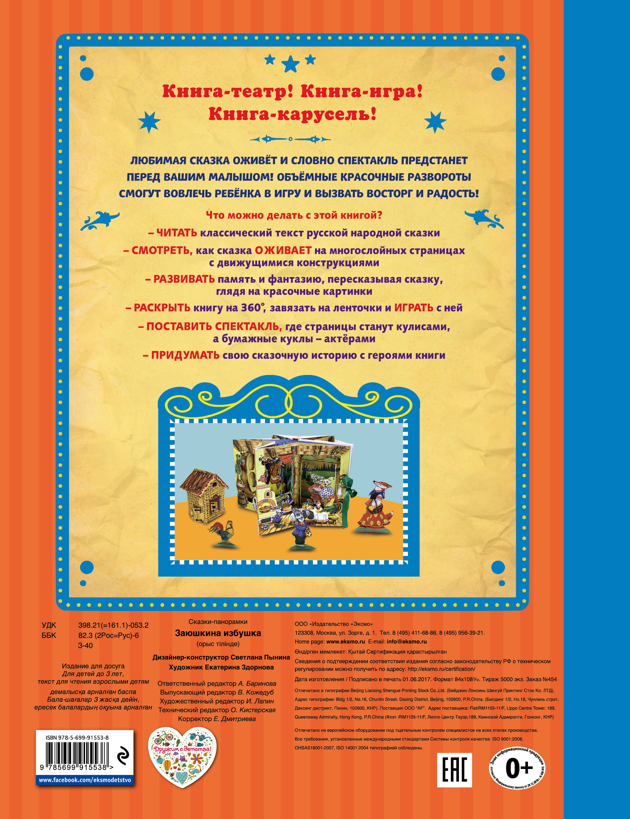 Книга, в которой любимая сказка оживёт на объёмных красочных разворотах и словно спектакль предстанет перед вашим малышом! Подвижные конструкции и бумажные куклы вовлекут ребёнка в игру и вызовут восторг и радость! Раскройте книгу на 360 градусов и завяжите на ленточки - у вас получится настоящий театр, с кулисами и актёрами! Вы можете поставить спектакль по прочитанной сказке или придумать новый сюжет с любимыми героями. Что можно делать с этой книгой? - ЧИТАТЬ классический текст русской народной сказки. - СМОТРЕТЬ, как сказка ОЖИВАЕТ на многослойных страницах с движущимися конструкциями. - РАЗВИВАТЬ память и фантазию, пересказывая сказку, глядя на красочные картинки. - РАСКРЫТЬ книгу на 360 градусов, завязать на ленточки и ИГРАТЬ с ней. - ПОСТАВИТЬ СПЕКТАКЛЬ, где страницы станут кулисами, а бумажные куклы - актёрами. - ПРИДУМАТЬ свою сказочную историю с героями книги.| Издательство | ООО "Издательство "Эксмо" |