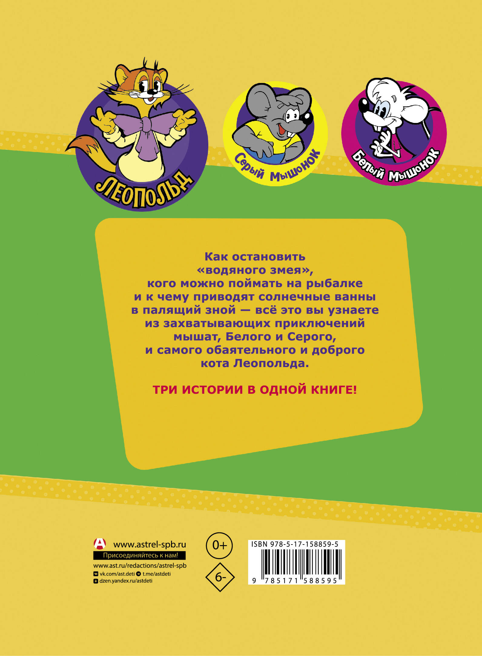 Знаменитый кот Леопольд - очаровательный интеллигент, который всегда носит бабочку и готов дружить даже с мелкими вредителями - Белым и Серым. Истории про Леопольда - актуальны и учат добру и милосердию. Они вселяют веру в то, что всё будет хорошо! А в любом деле важно проявлять спокойствие и уметь видеть красоту! Этому можно поучиться у Леопольда. Забавные приключения кота Леопольда и двух назойливых мышат, Белого и Серого, не оставят равнодушными ни детей, ни их родителей! Три истории в одной книге!| Издательство | Издательство "АСТ" |