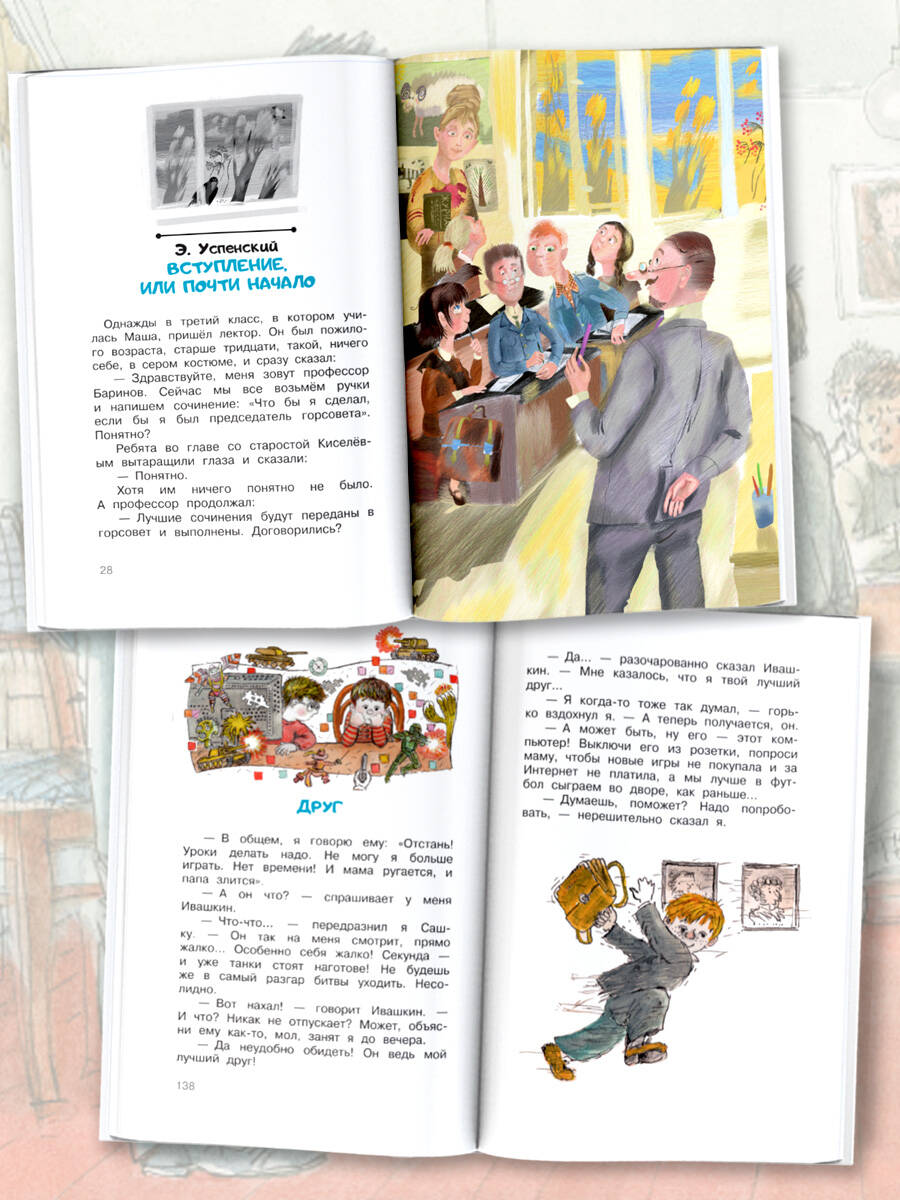 Наша книга - к ладезь п олезной и нформации! Из неё ребята узнают, что делать, чтобы не сдавать экзамены, почему в Третьяковской галерее в ыставляются фантики от конфет, куда отправляют детей с незамутнённым мышлением и с каких пор и сторик-Оборотень перестал питаться лыжниками. А ещё каждый прочитавший книгу получит заряд положительной энергии на весь учебный год! Потому что все истории сборника ужасно весёлые, ведь их написали самые лучшие детские писатели - Э . Успенский, Л. К аминский, К. Д рагунская и другие.| Издательство | Издательство "АСТ" |