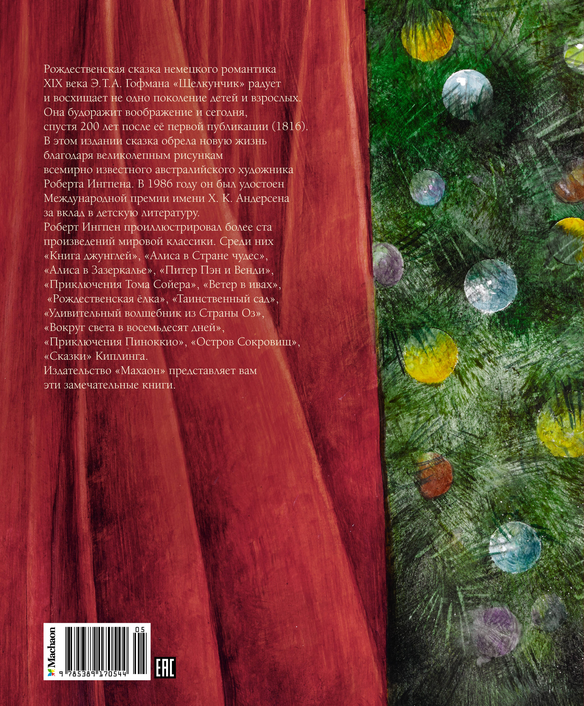 Рождественская история немецкого романтика ХIХ века Э. Т. А. Гофмана «Щелкунчик» радует и восхищает не одно поколение детей и взрослых. Даже спустя 200 лет она будоражит наше воображение. Несмотря на сказочность повествования, автор впервые изображает реальность эпохи, а не какой-то неведомый вымышленный мир. Когда-то история живых людей и оживших игрушек и трогательная любовь юной Мари к бедному Щелкунчику вдохновила на создание одноимённого балета и великого русского композитора П.И. Чайковского. Уникальность издания ещё и в том, что в нём представлена полная версия гофмановской сказки.| Издательство | Махаон |