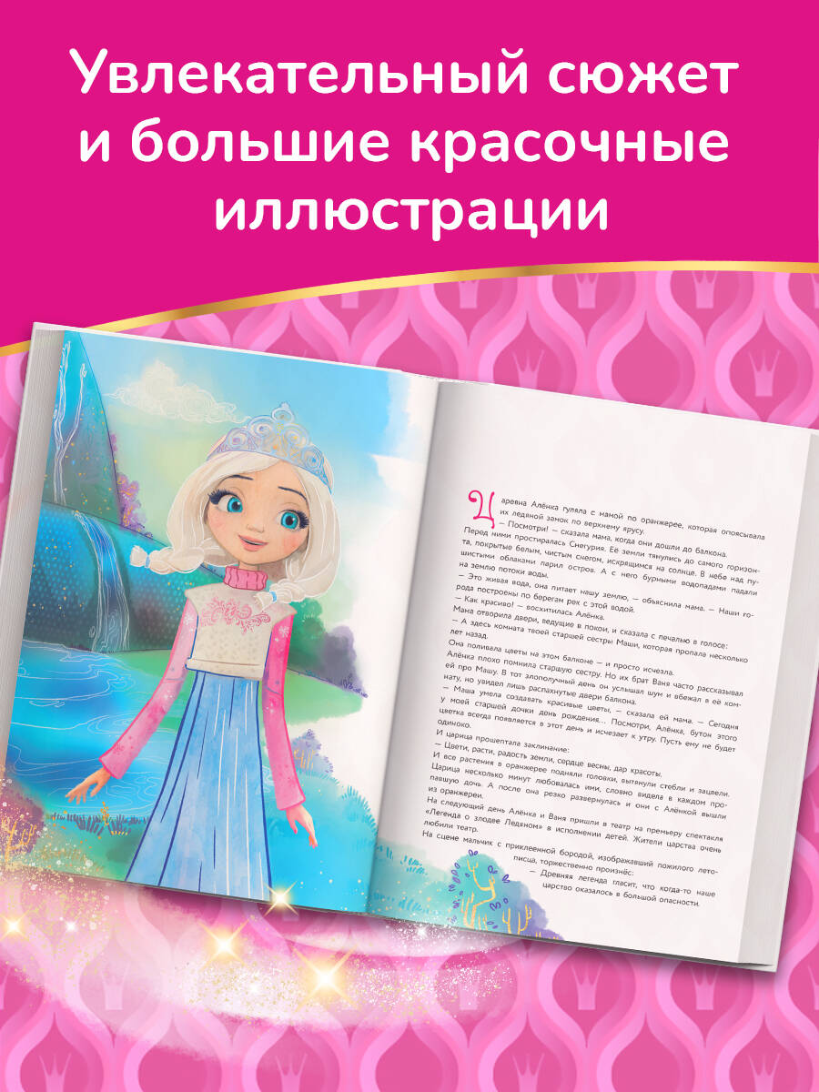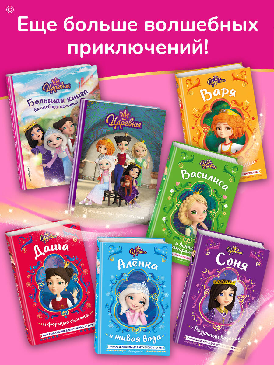 Большой сборник волшебных историй о любимых героинях мультфильма «Царевны» от анимационной студии «Мельница». Девочкам вновь предстоит справиться со множеством препятствий: Даша отправится в дальнюю дорогу, чтобы добыть эликсир счастья; Варя - по стопам Феникса, узнать всю правду о похищенном огненном пере; Василиса - на поиски волшебного папоротника; Соня - к Радужному водопаду, а Алёнка сразится с самим Ледяным. Увлекательный сюжет и большие красочные иллюстрации точно оценят юные поклонницы «Царевен»!