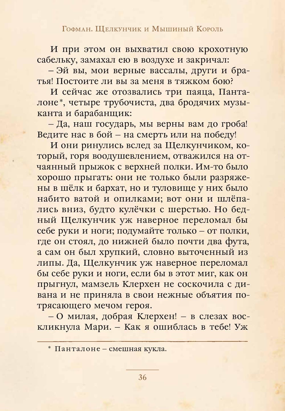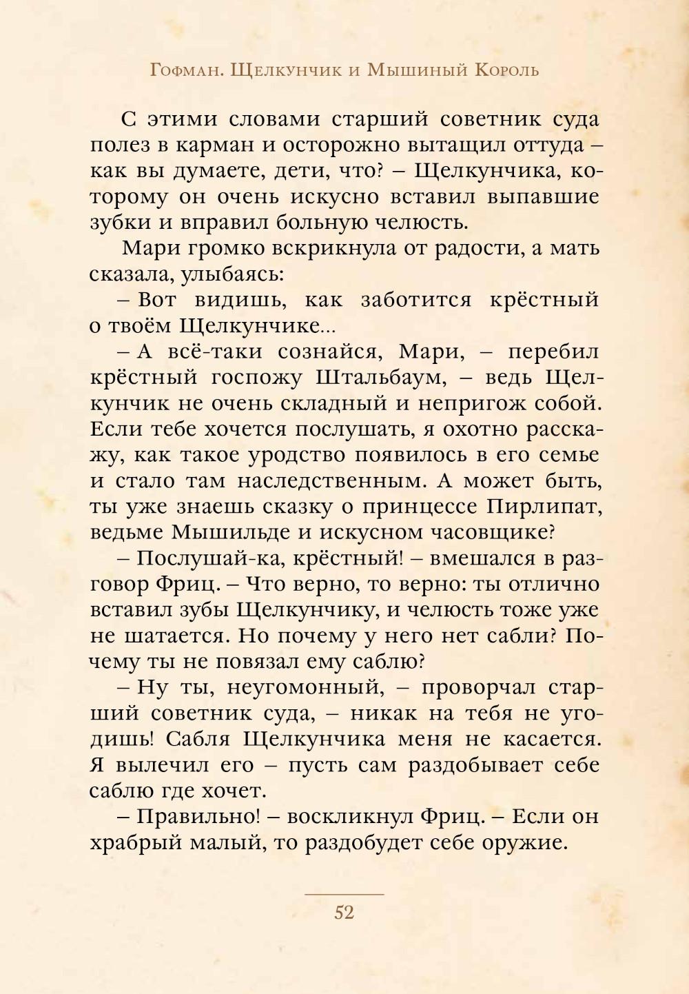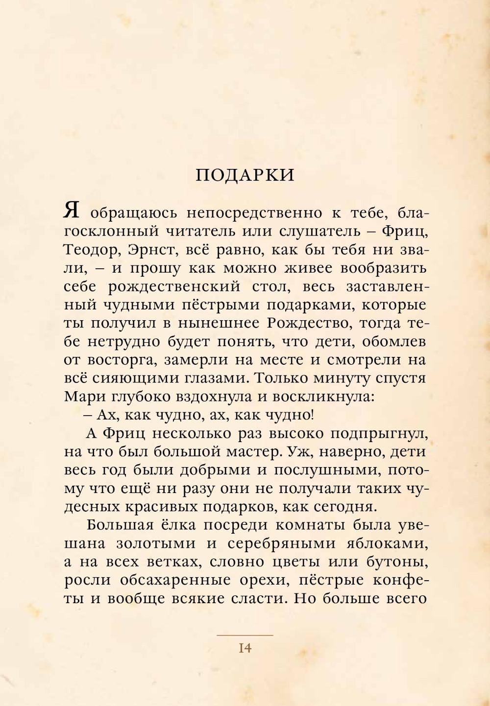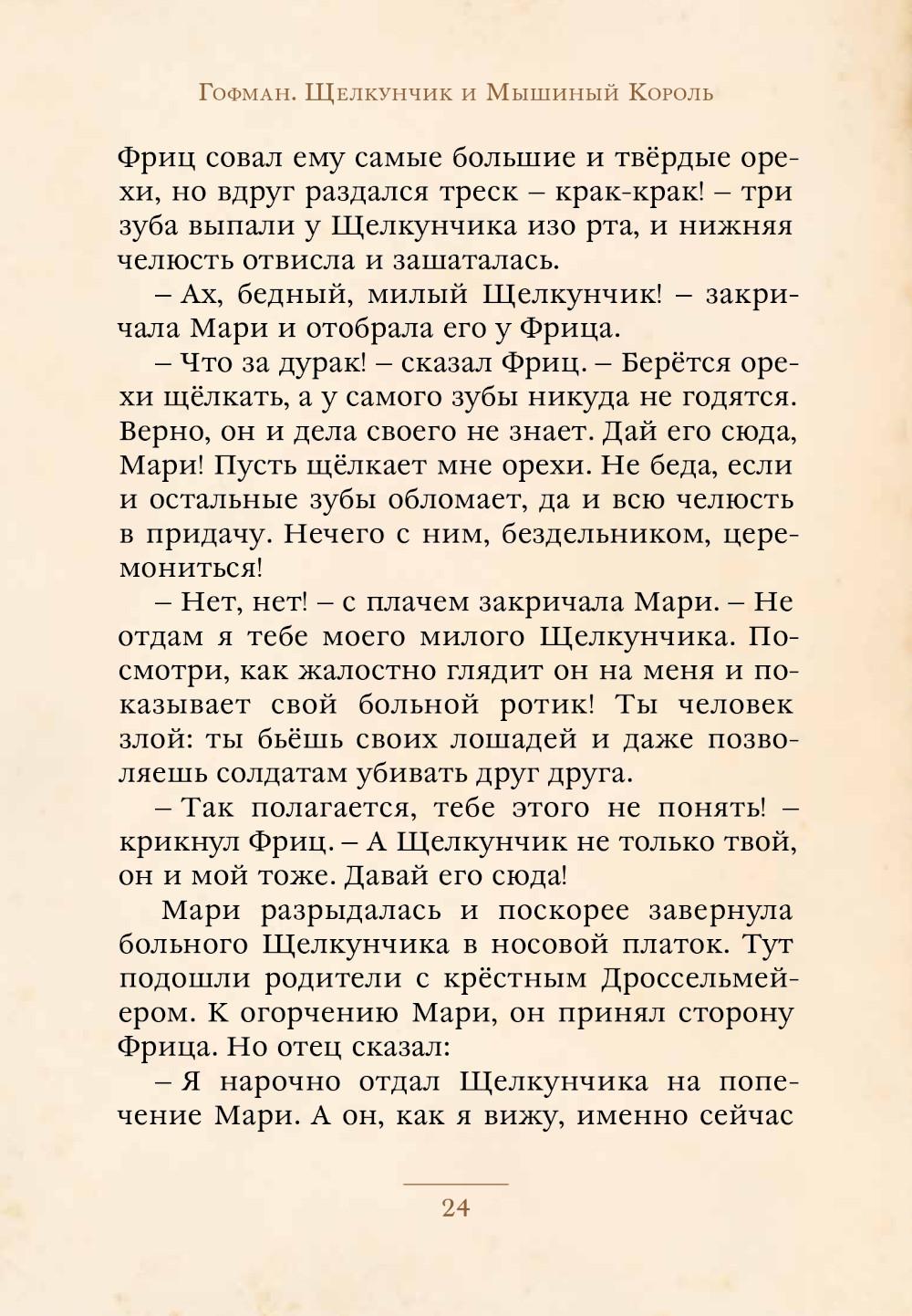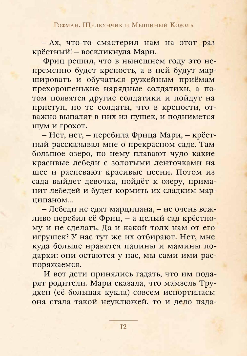 Фриц и Мари - дети советника медицины Штальбаума. Они были добрыми и послушными весь год, поэтому получили вФриц и Мари - дети советника медицины Штальбаума. Они были добрыми и послушными весь год, поэтому получили в Рождество множество чудесных подарков. Среди них маленькая Мари заметила необычную игрушку. Это был Щелкунчик, удел которого - колоть орехи. Но внутри нескладной игрушки скрывался заколдованный прекрасный юноша, и только доброе сердце способно снять с него проклятие коварной Мышильды. Рождество множество чудесных подарков. Среди них маленькая Мари заметила необычную игрушку. Это был Щелкунчик, удел которого - колоть орехи. Но внутри нескладной игрушки скрывался заколдованный прекрасный юноша, и только доброе сердце способно снять с него проклятие коварной Мышильды.| Издательство | ИД Мещерякова |