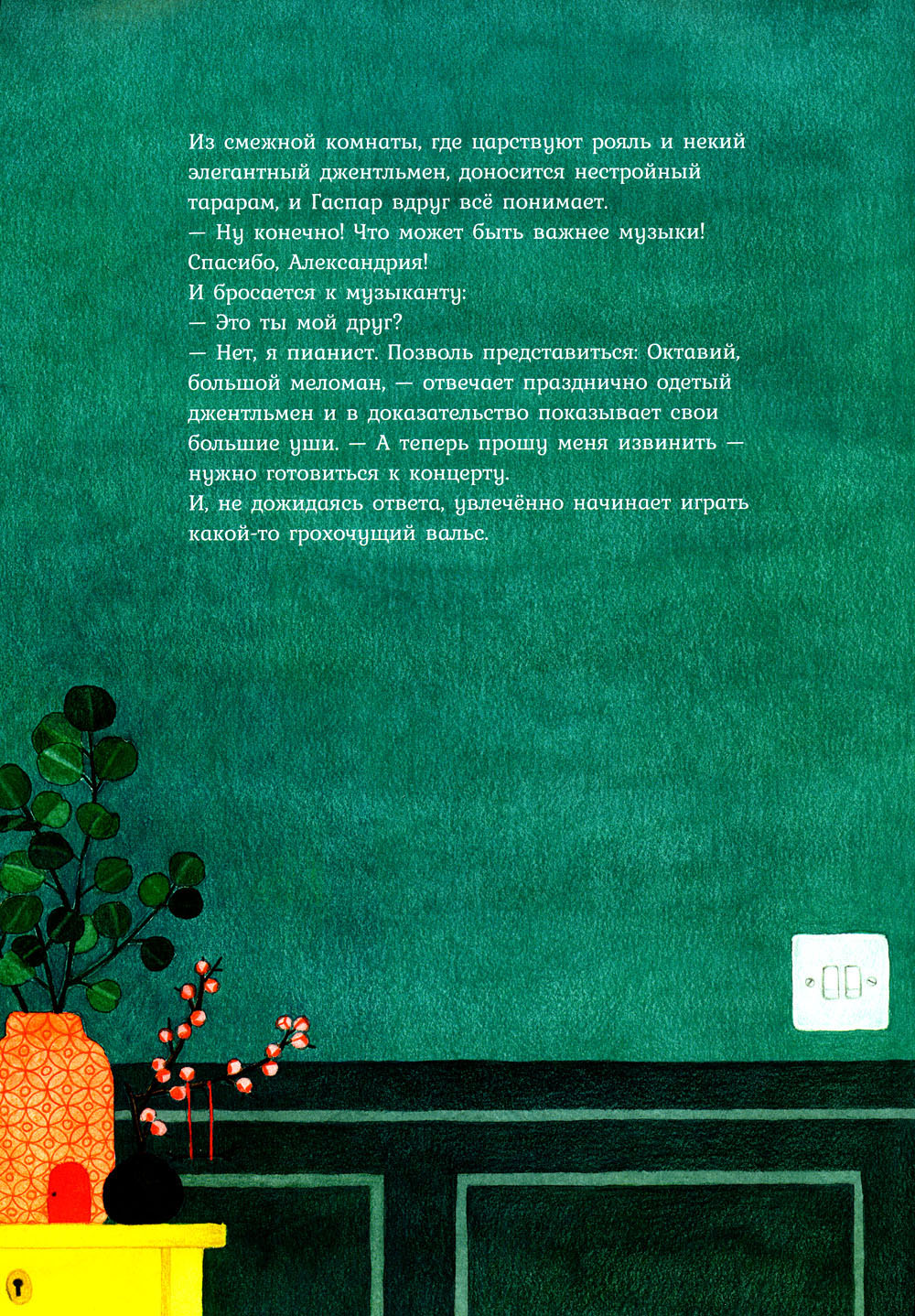 Устроившись в своей постели, Гаспар мечтает спать без задних ног и видеть сны. Но ночной мрак такой мрачный, что сон не идёт. Повсюду какие-то странные тени и подозрительный шум… Гаспару очень одиноко, пока не появляется мышка Аглая, которая хочет помочь ему найти друга. Они заглянут во все комнаты в доме и встретят много интересного… Приключение, которое заканчивается крепким сном. Вечерняя история о детских страхах и дружбе, оживающая благодаря огромному таланту французской художницы Сен Сун Ратанаван.| Издательство | Попурри |