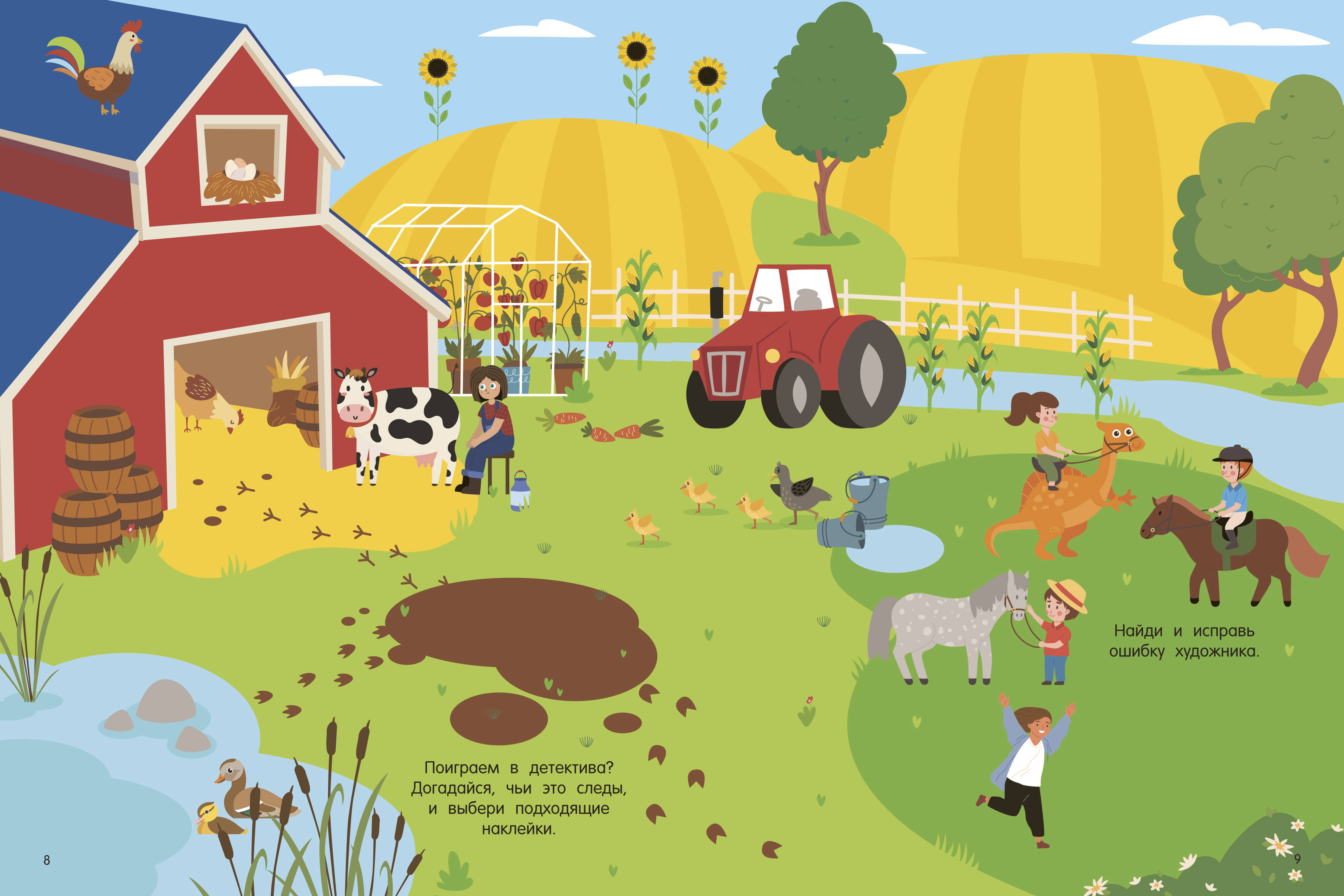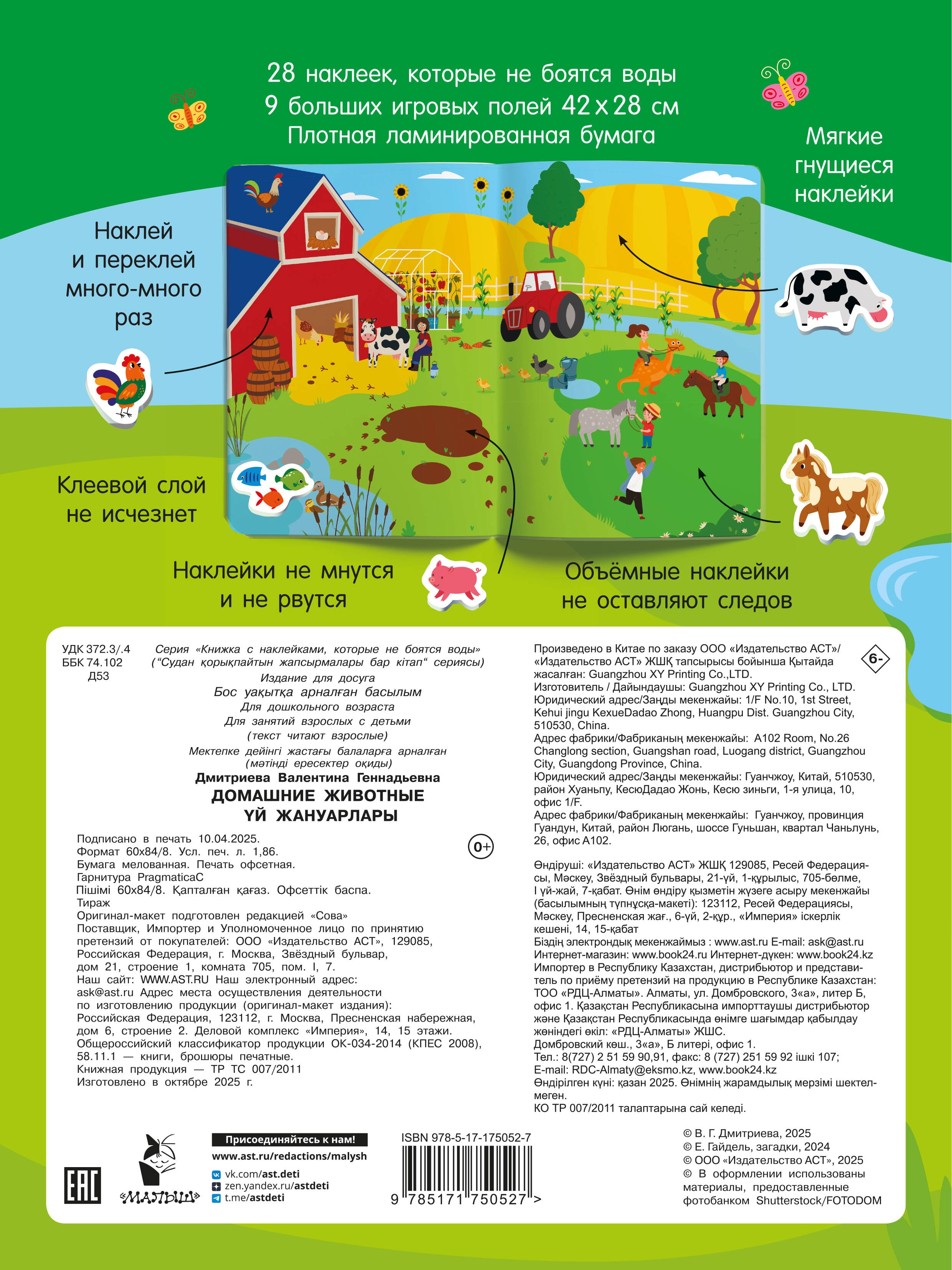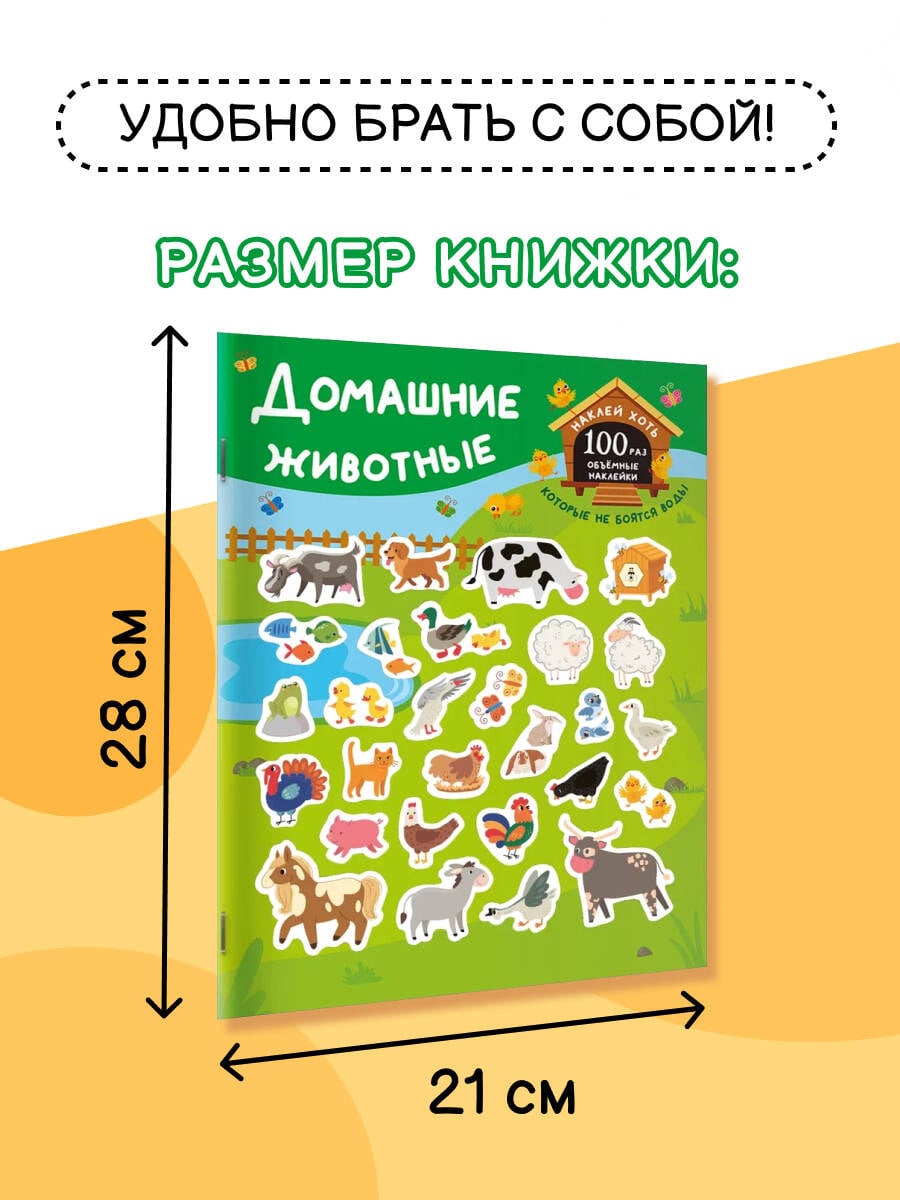 Отличный подарок для девочек и мальчиков! В книге «Домашние животные» - 9 больших игровых полей на плотной ламинированной бумаге и 28 по-настоящему многоразовых наклеек. Наклейки объёмные, вспененные, мягкие, хорошо гнутся. Их можно клеить и переклеивать хоть 100 раз - клеевой слой не исчезнет даже при соприкосновении с водой. Наклейки не мнутся, не рвутся и не оставляют следов. Есть специальная подложка, на которой удобно хранить наклейки, чтобы они не потерялись и были всегда под рукой. Прекрасное полиграфическое исполнение: книга большого формата, страницы с закруглёнными краями, обложка из мелованного картона. Книга безопасна и долговечна. На игровых разворотах малыш найдёт яркие летние картинки деревни и фермы, задания и подсказки, лабиринт, сказки и загадки. На каждом игровом поле можно использовать любое количество наклеек - даже все 28, всё зависит от фантазии. Можно раз за разом создавать уникальные композиции и придумывать новые истории. Игры с наклейками развивают логику и внимание, тренируют мелкую моторику, знакомят с окружающим миром, пробуждают творческие способности, совершенствуют речь.| Издательство | Издательство "АСТ" |