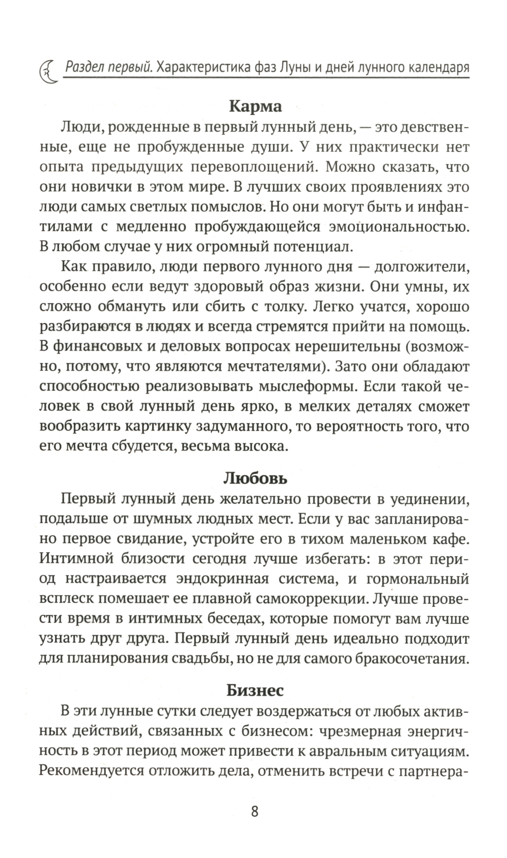 Перед вами книга, из которой вы узнаете, как Луна влияет на разные сферы нашей жизни. С древних времен люди жили, ориентируясь на лунные ритмы, так как знали об их влиянии на человеческий организм. Жить в соответствии с лунными ритмами - значит жить в согласии с природой, и предлагаемый календарь поможет вам в этом.