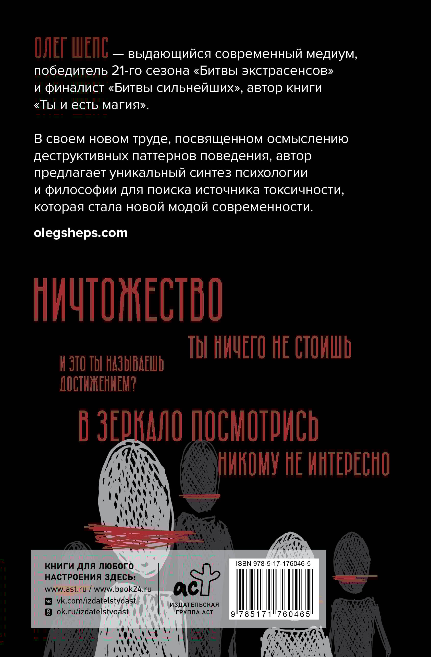 Олег Шепс - выдающийся современный медиум, победитель 21-го сезона "Битвы экстрасенсов" и финалист "Битвы сильнейших", автор книги "Ты и есть магия". В своем новом труде, посвященном осмыслению деструктивных паттернов поведения, автор предлагает уникальный синтез психологии и философии для поиска источника токсичности, которая стала новой модой современности.| Издательство | Издательство "АСТ" |