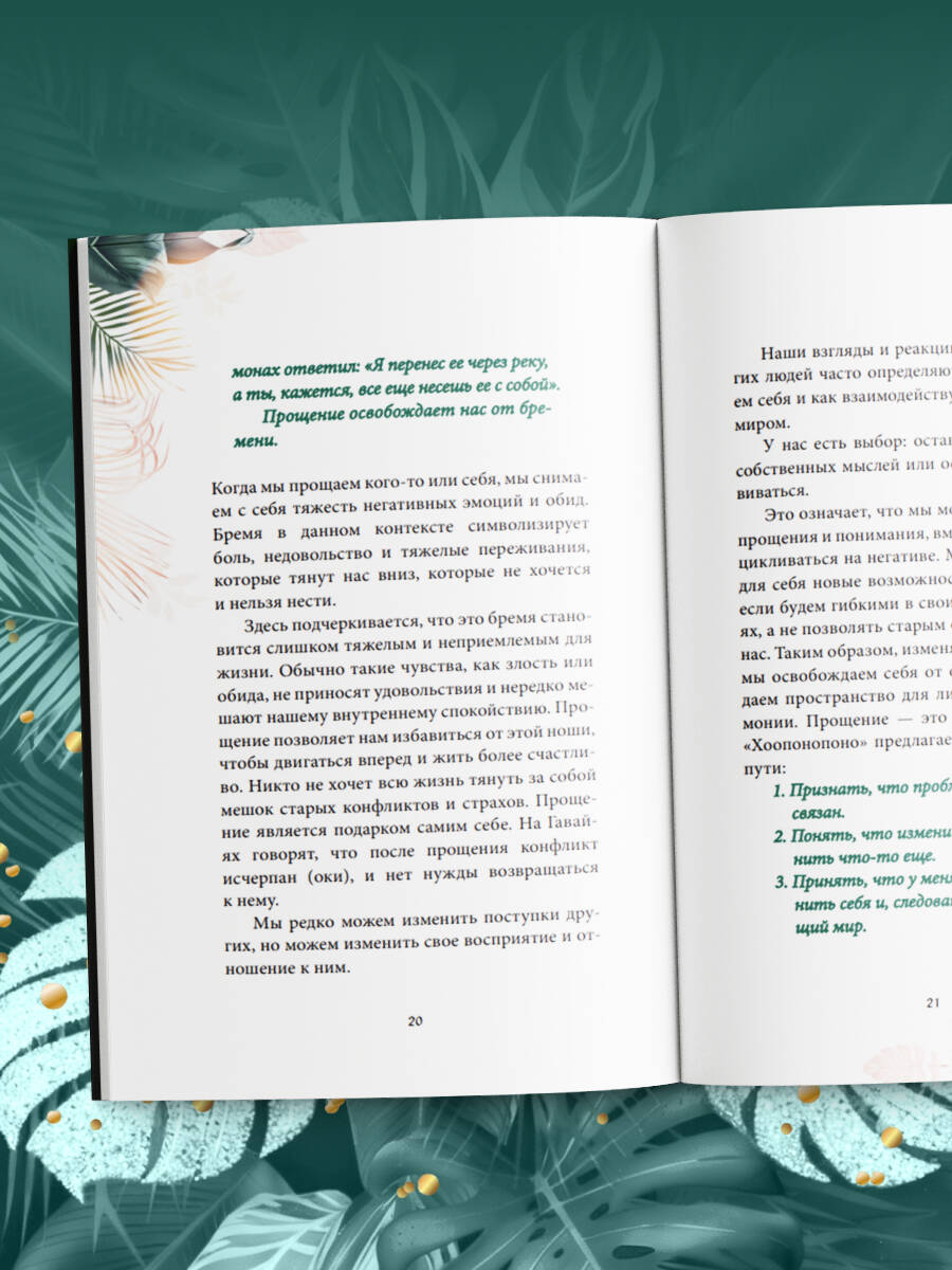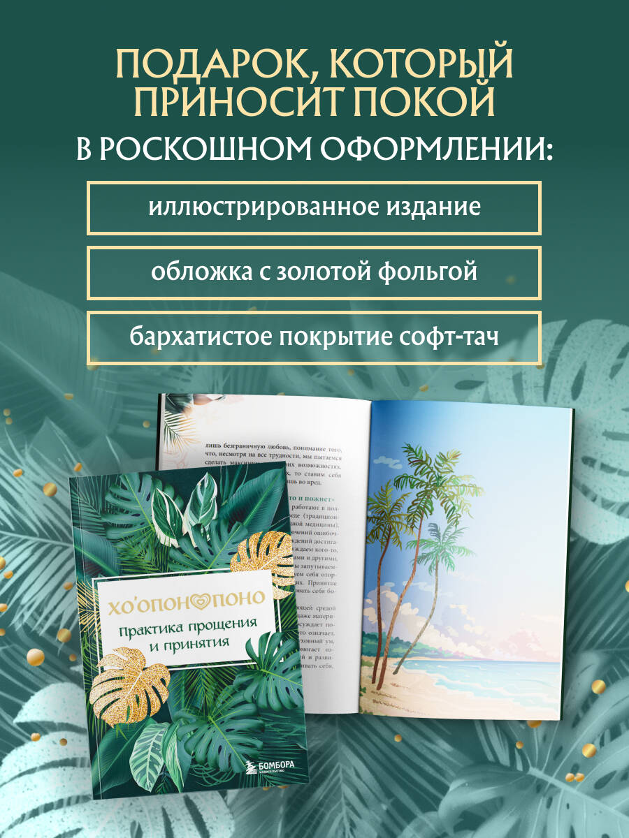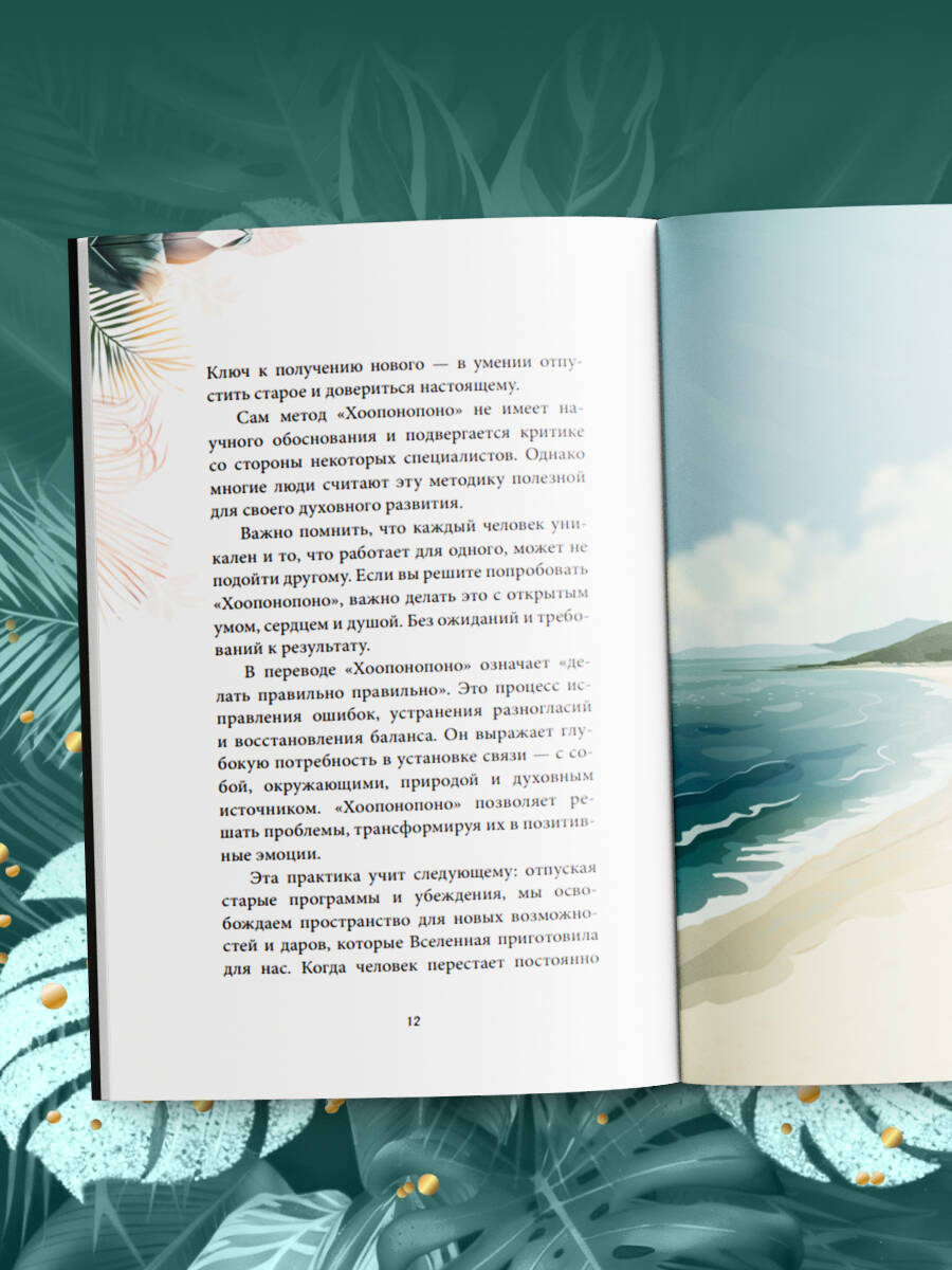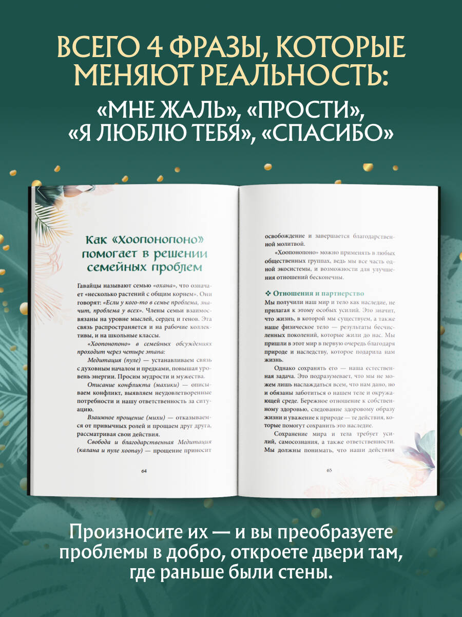 Хоопонопоно - это древние гавайские методы обретения гармонии и внутреннего покоя. Они позволяют легко решать проблемы и трансформировать их в добро. «Мир начинается с тебя!» - гласит гавайская мудрость. Каждый человек несет ответственность за свои собственные поступки и за те события, которые происходят во внешнем мире. Окружающий мир тесно связан с нашим внутренним состоянием, с эмоциями и мыслями. Поэтому, меняя внутренние установки, можно преобразовывать мир вокруг. Всего 4 фразы: • Мне жаль. • Пожалуйста, прости меня. • Я люблю тебя. • Спасибо. Используя этот простой метод, вы убедитесь, что Хоопонопоно открывает двери там, где раньше были глухие стены! Добавьте солнца и моря в свою жизнь! Иллюстрированное полноцветное издание, обложка украшена золотой фольгой и плёнкой софт-тач - идеально в подарок!