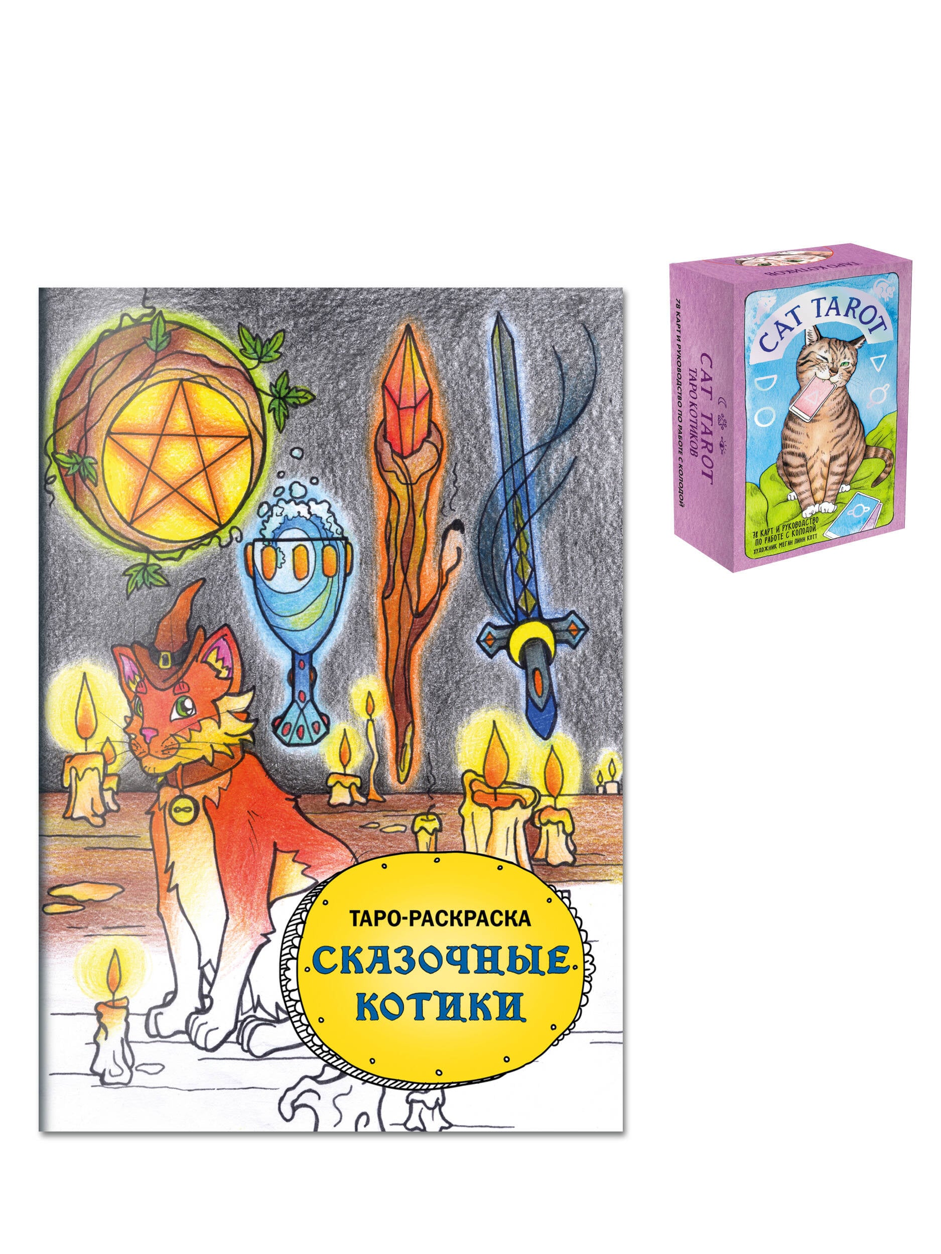 Комплект: Cat Tarot. Таро Котиков (78 карт и руководство в подарочном футляре) + Таро-раскраска Сказочные котики