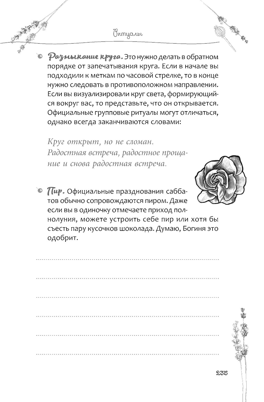 Ведьмы используют множество инструментов в своей магической практике, и самая мощная сила содержится в предметах, которые имеют для нас значение на эмоциональном уровне. Согласитесь, нет инструмента более личного для любого, кто занимается ведьмовством, чем гримуар, или Книга Теней. Конечно, сегодня не у всех ведьм есть такая книга, ведь ее создание требует времени, желания, а для некоторых важен еще и хороший почерк... Предлагаемая книга может заменить Книгу Теней, которую вам пришлось бы самим писать с самого начала. Также здесь есть много пустых страниц, где вы можете записывать свои наработки, полученные методом проб и ошибок. Считается, что знания и заклинания, написанные от руки, имеют больше силы. Так почему бы не проверить это? «Какие камни более эффективны для процветания и лечения? Есть ли заклинания, которые будут работать всегда? С какими богами и богинями вы связаны больше всего и почему? Это ваша Книга Теней. Используйте ее для исследования, изучения, практики или просто прочитайте ради интереса - делайте с ней все, что хотите. Пишите и рисуйте на страницах! Наполните их своей магией!»| Издательство | ИГ Весь |