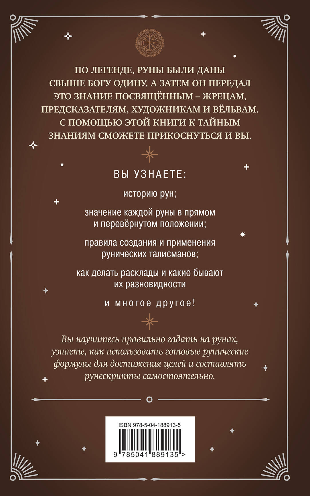 По легенде, руны были даны свыше богу Одину, а затем он передал это знание посвящённым - жрецам, предсказателям, художникам и вёльвам. С помощью этой книги к тайным знаниям сможете прикоснуться и вы. В книге: · Как заглянуть в будущее. · Как найти ответы на важные жизненные вопросы. · Способы привлечь богатство и удачу на свою сторону и как защититься от болезней и неприятностей. Здесь вы найдете доступные и подробные описания рун и их значений, правила гадания, популярные расклады и их толкования, рекомендации по изготовлению талисманов и способы коррекции судьбы с помощью рунического искусства.