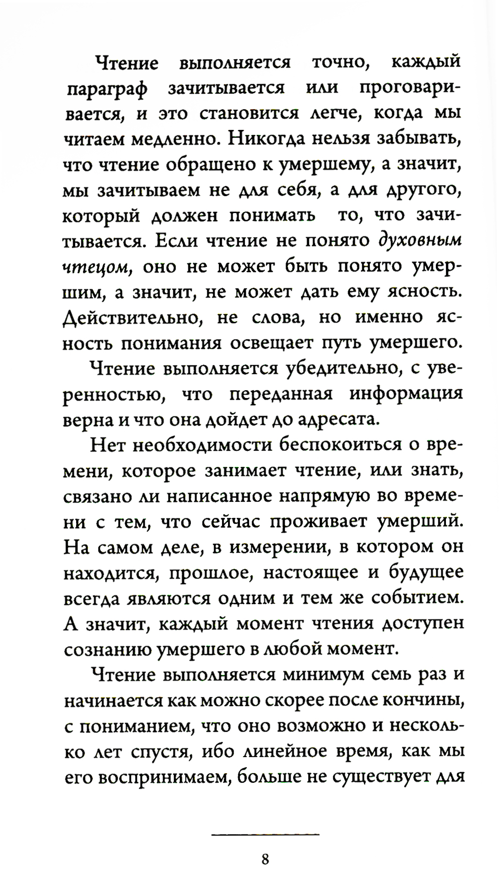 Цель данной книги в том, чтобы дать возможность другу, родственнику, волонтеру или специалисту по сопровождению умерших зачитать покинувшему физическое тело человеку инструкции, которые помогут ему и послужат путеводителем в жизни после смерти. Это чтение помогает умершему пройти через различные загробные миры. Очевидно, это самая важная вещь, которую вы можете сделать для умершего - близкого или даже не очень близкого вам человека.| Издательство | Амрита-Русь |