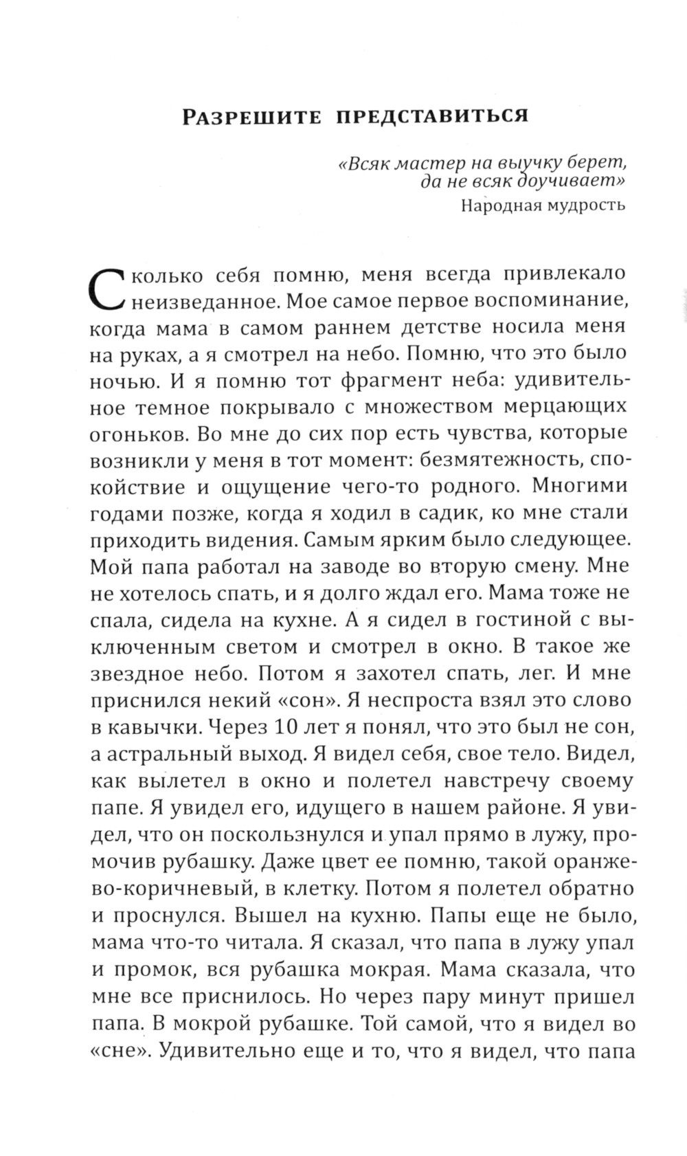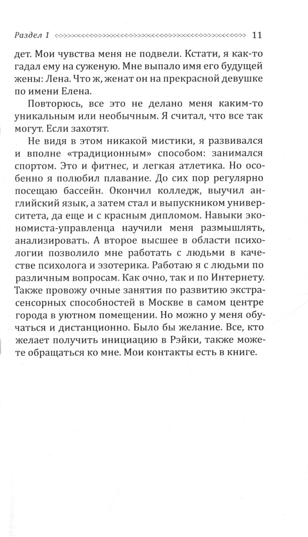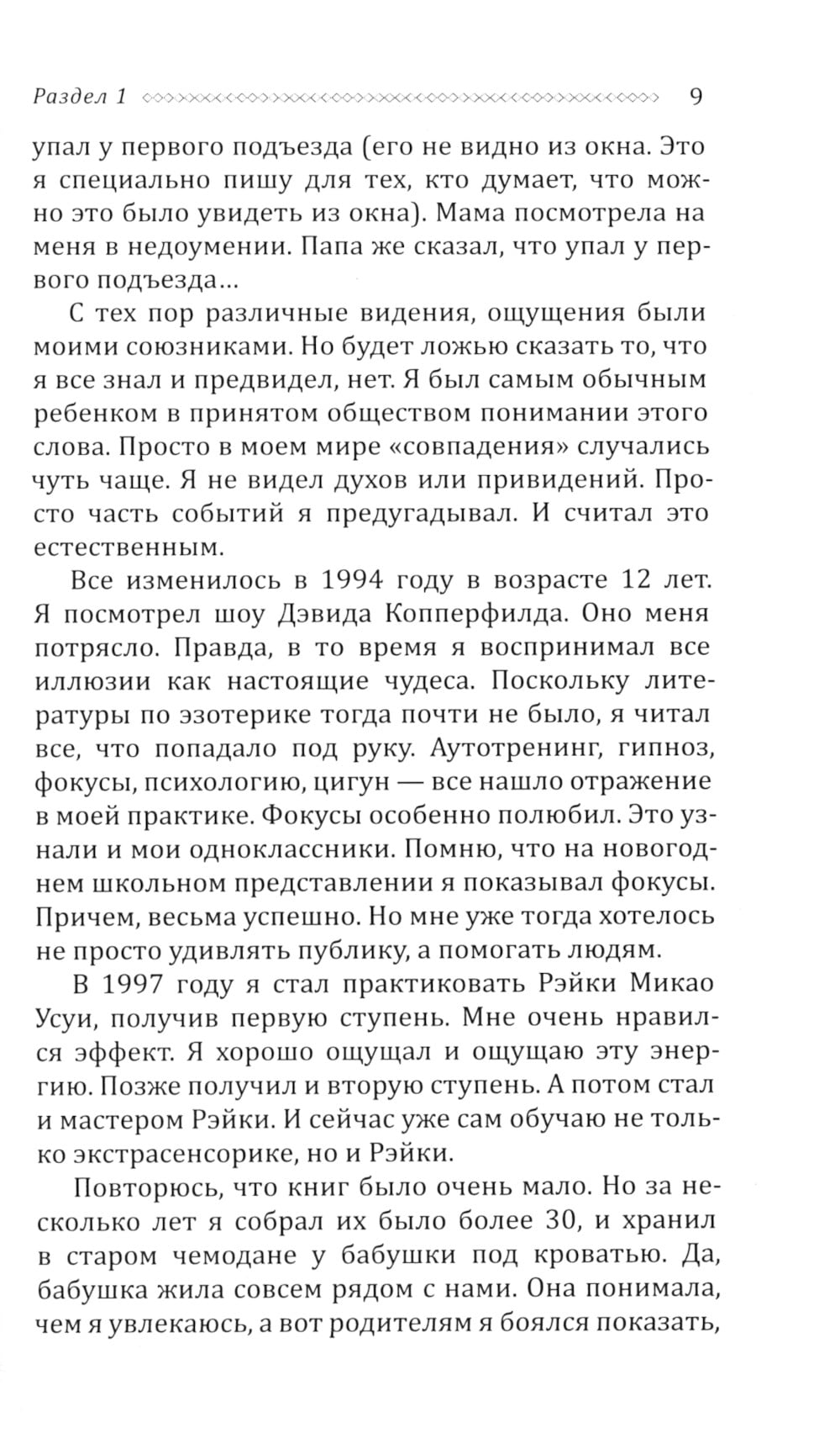 Автор данной книги убежден: каждый человек имеет врожденные экстрасенсорные способности. Но люди разучились пользоваться ими, считая проявления интуиции неким даром или даже чем-то сверхъестественным. Данная книга призвана развенчать этот миф. Она представляет собой подробное практическое руководство по развитию своих природных способностей к экстрасенсорному считыванию информации вне времени и пространства. Основываясь на своем многолетнем опыте консультирования клиентов в качестве экстрасенса, автор предлагает множество техник раскрытия своей интуиции и её практического использования. Из книги вы узнаете, какие способы получения информации существуют, как научиться сканировать прошлое и предвидеть будущее, а также сможете помогать себе и близким в самых разнообразных жизненных ситуациях. Книга адресована широкому кругу лиц, интересующихся вопросами развития экстрасенсорных способностей, практической эзотерикой и саморазвитием.