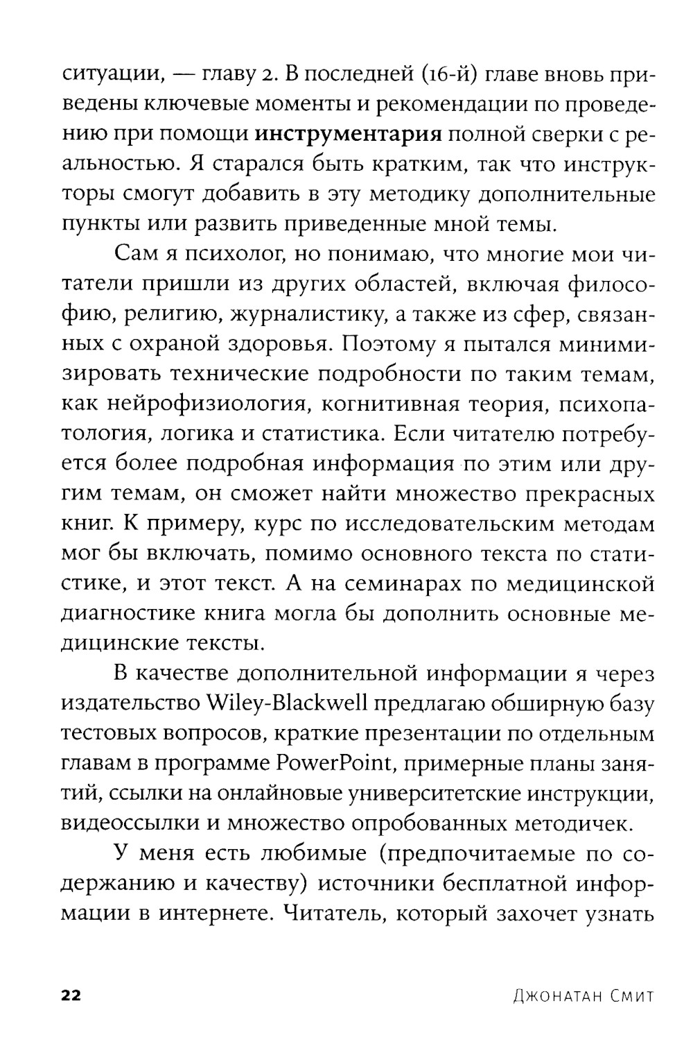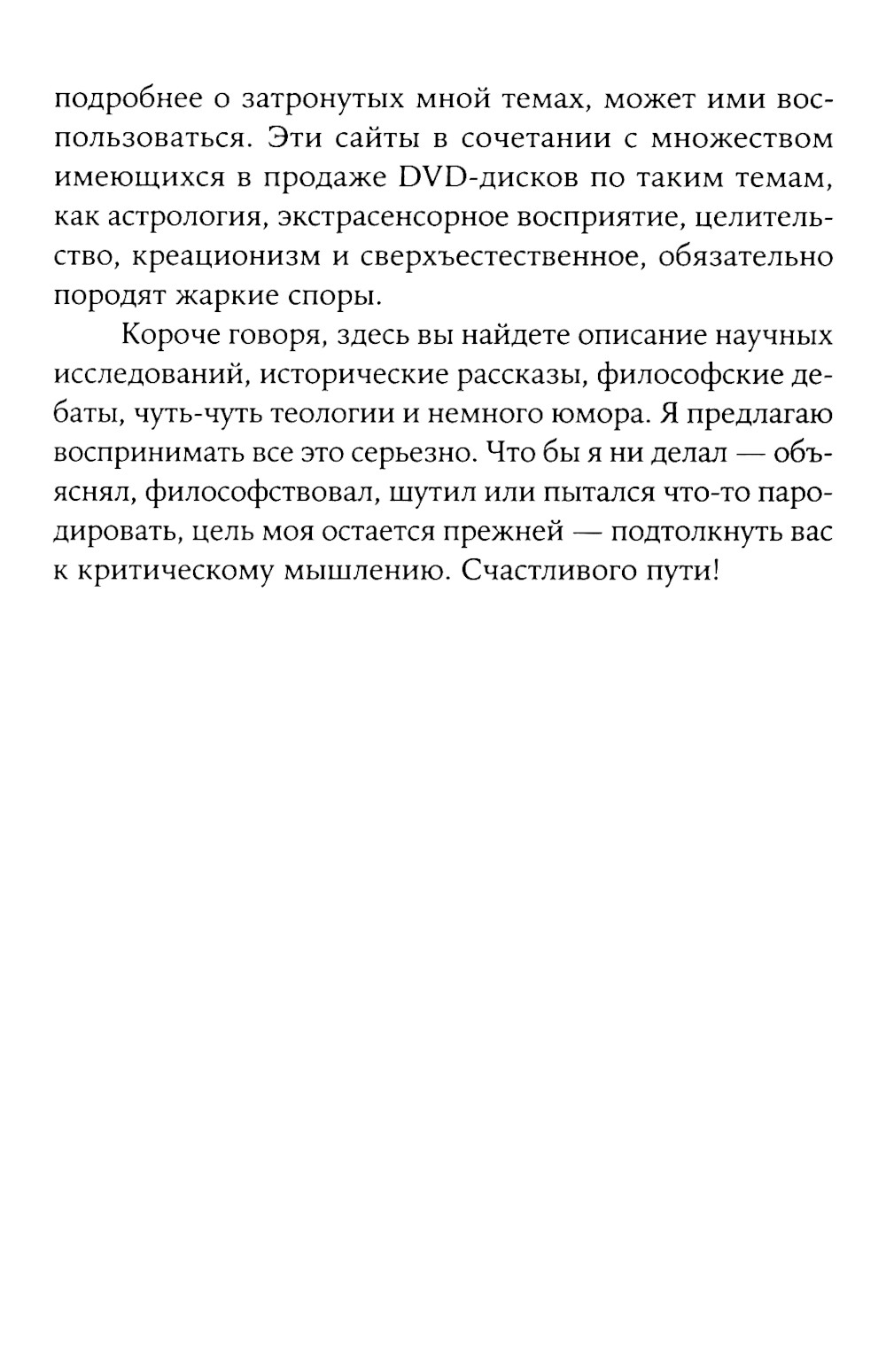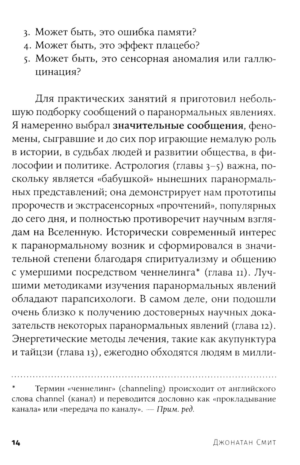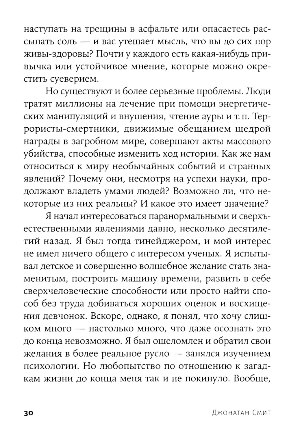 Уверенно оперируя данными психологии, физики, логического анализа, истории, Джонатан Смит ведет читателя по таинственным территориям непознанного, не давая потеряться среди сложных научных понятий и помогая различать невероятную правду и правдоподобный обман. Особенности - Клинический психолог, профессор психологии Джонатан Смит - квалифицированный борец с затуманиванием мозгов. Книга без проблем обучит навыкам критического мышления и объективной оценки явлений, которые считают паранормальными. - Вы сможете узнать, что стоит за огромным числом необычных, необъяснимых или просто противоречивых явлений - начиная с библейских чудес и заканчивая биоэнергетическими методами лечения. - Возможность быть ближе к истине дается посредством альтернативного мнения - в противовес телевизионным продюсерам (которые зарабатывают деньги на экшене) и «зомбиящику», полного байек про НЛО, приведений и т.п., очевидно поддерживающего в обществе всеобщую социальную шизофрению.| Издательство | Альпина нон-фикшн |