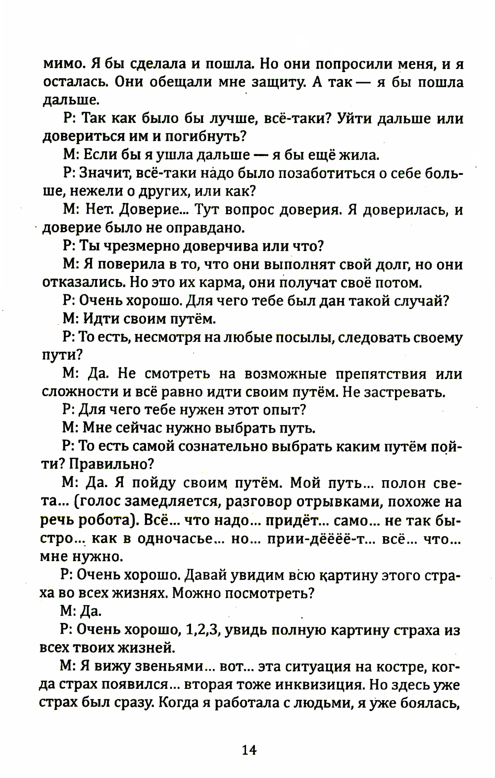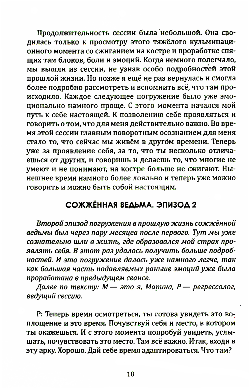 В течение нескольких лет психолог-регрессолог Марина Кейлина изучала себя, и память своей Души через технику регрессивного поиска и терапии. В этом ей помогали коллеги-регрессологи со всех концов мира, обладающие разными навыками и знаниями. Результатом этой работы стало глубокое понимание себя, смысла своего воплощения на Земле, проработка и трансформация множества подсознательных блоков, что тормозили движение на пути самореализации. Большая часть этой непростой работы собрана воедино в этой книге. В ней представлены транскрибации (перевод из аудиоформата в текст) живых сеансов регрессии с комментариями автора. Данная книга будет интересна широкому кругу читателей. Также её можно назвать практическим пособием для регрессологов, ведь она содержит описание основных техник и приёмов, которые используются в практике регрессивной психологии.| Издательство | Амрита-Русь |