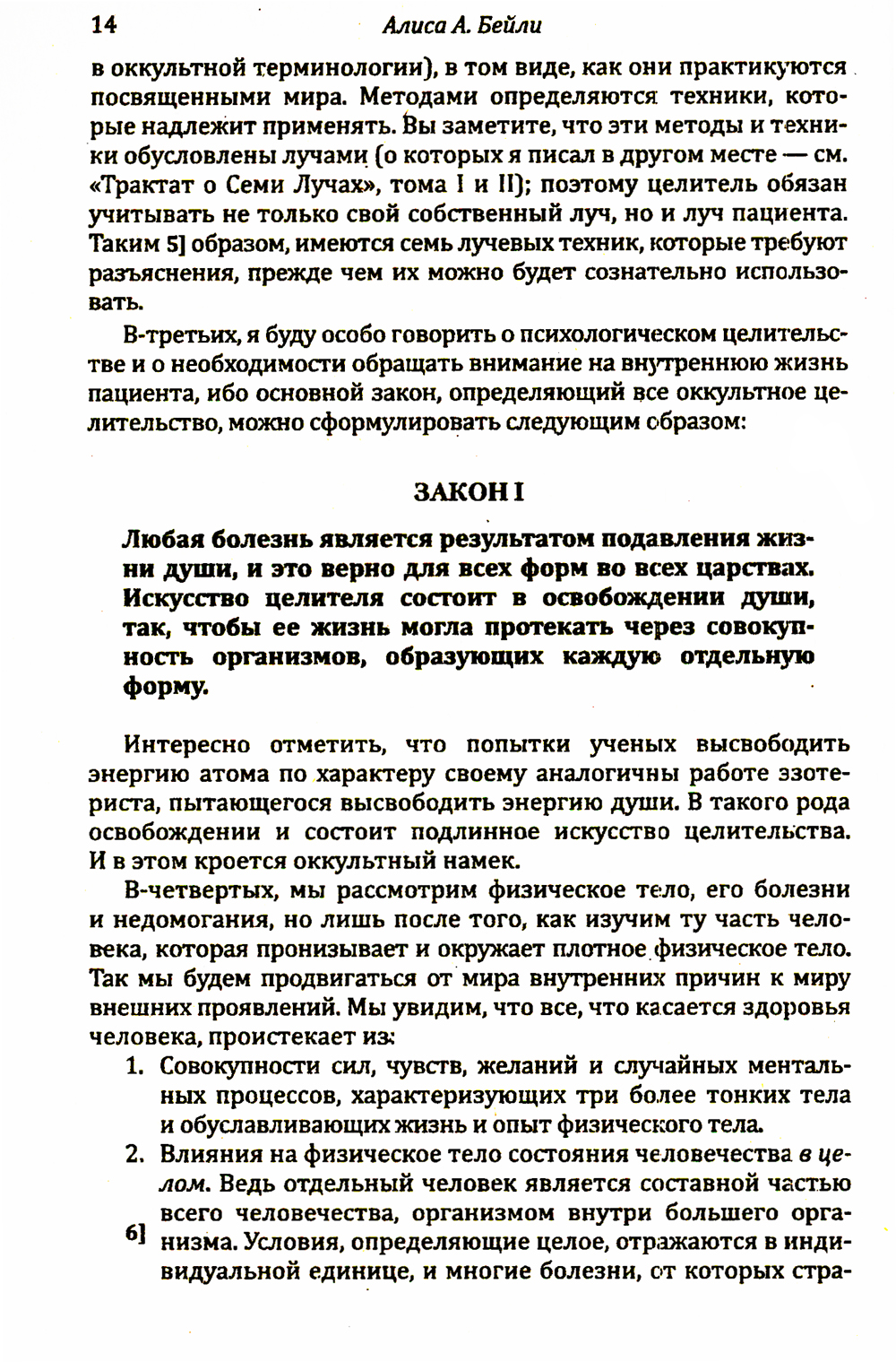 Вступая в область целительства, попадаешь в мир огромного эзотерического знания. В данной книге, во-первых, затронуты причины болезней, ибо тот, кто изучает оккультизм, всегда должен начинать с мира причин, а не с мира следствий. Во-вторых, изложены семь методов целительства. Особое внимание уделяется психологическому целительству и необходимости обращать внимание на внутреннюю жизнь человека, ибо любая болезнь в оккультном целительстве есть результат подавления жизни души.| Издательство | Амрита-Русь |