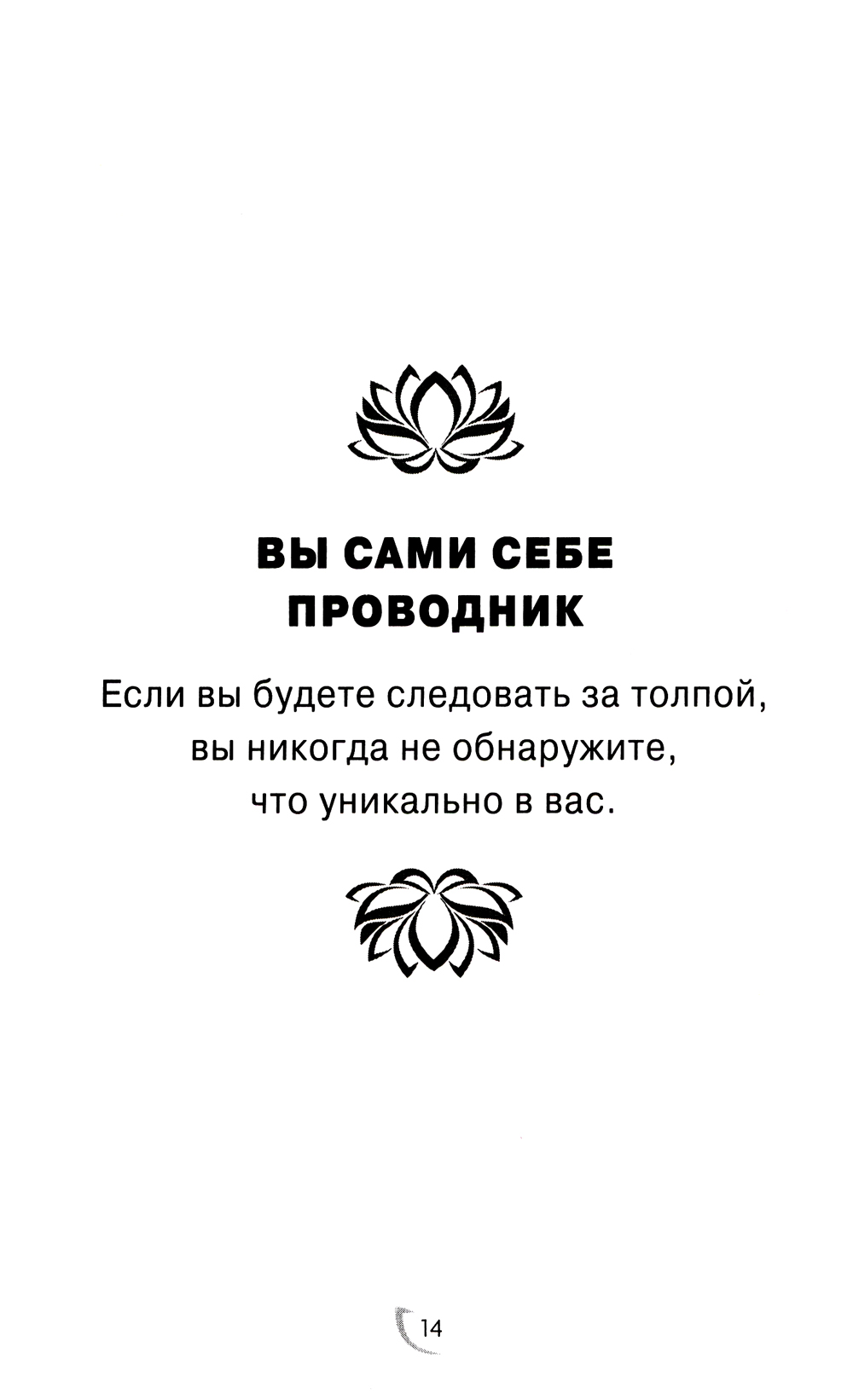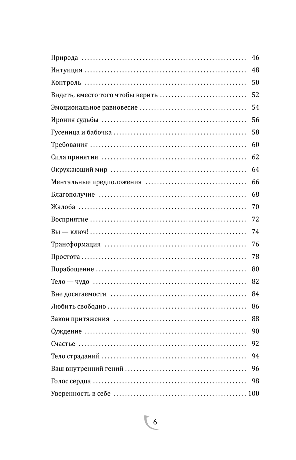Книга «Сила принятия» предлагает новый способ наблюдения и восприятия основных тем нашего существования. Автор подвергает сомнению различные ментальные и эмоциональные методы управления, предлагая инновационный, но простой способ, который восстанавливает и укрепляет отношения с нашим телом, разумом и эмоциональной системой. Ее подход заключается в спонтанном освобождении от различных условностей, которые препятствуют нашей внутренней ясности. Различные точки зрения, изложенные автором, позволяют изменить наше сознание на глубоком уровне. Именно это делает книгу такой ценной и поучительной.| Издательство | Попурри |