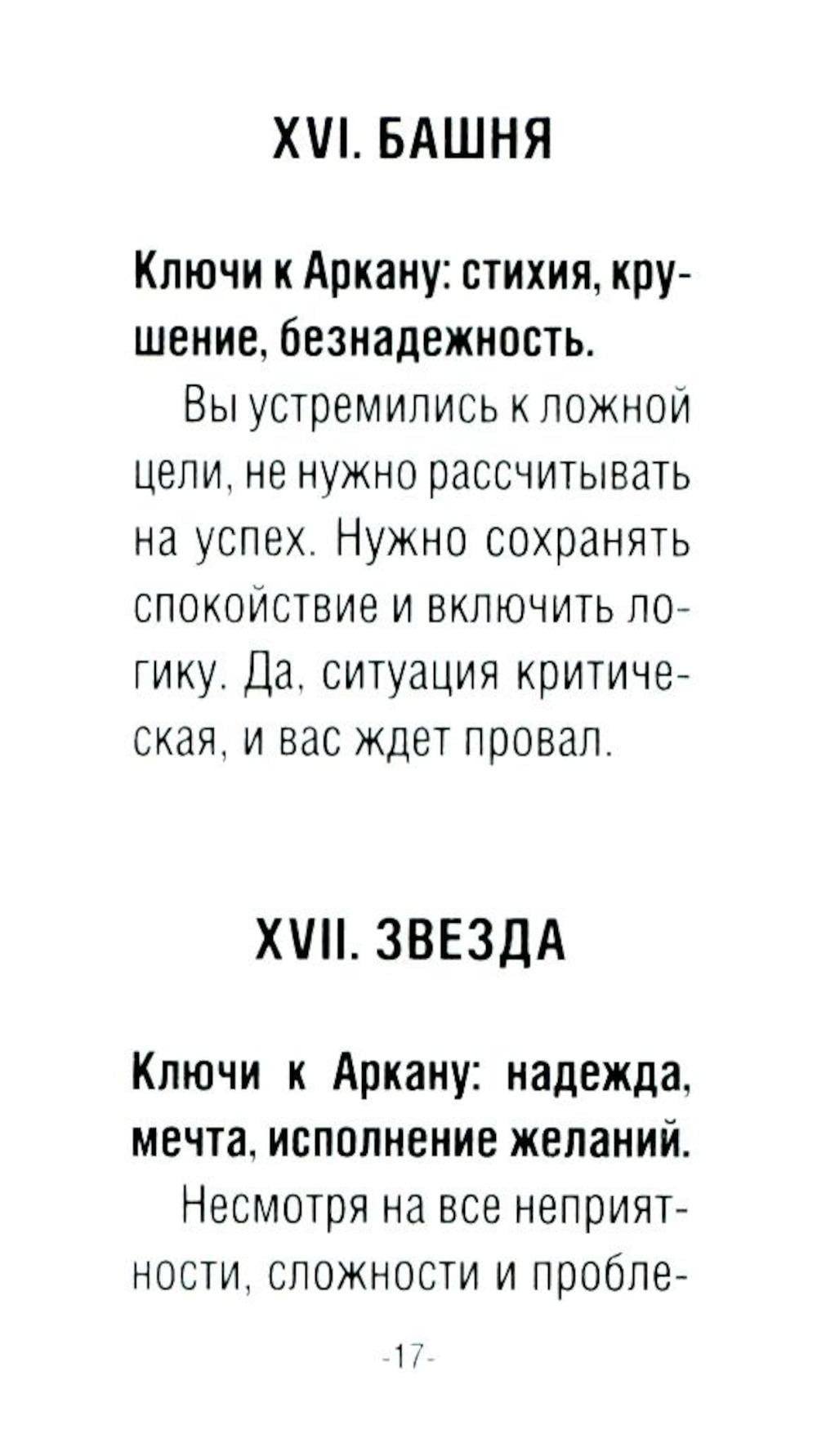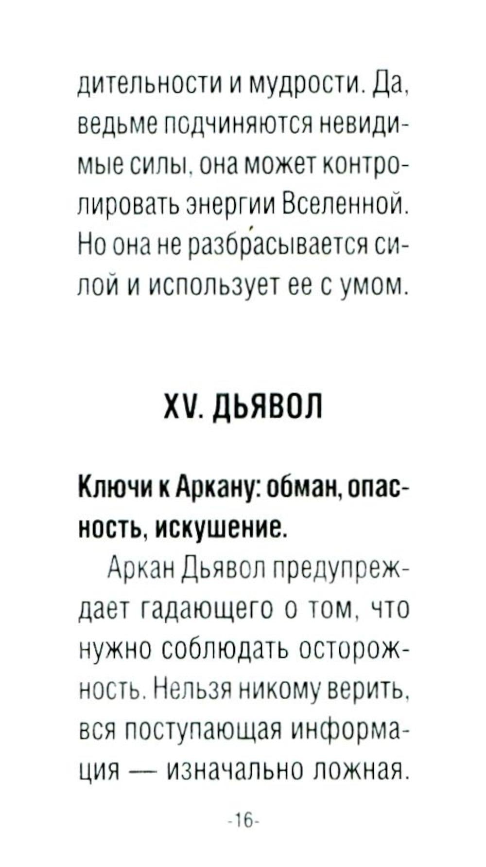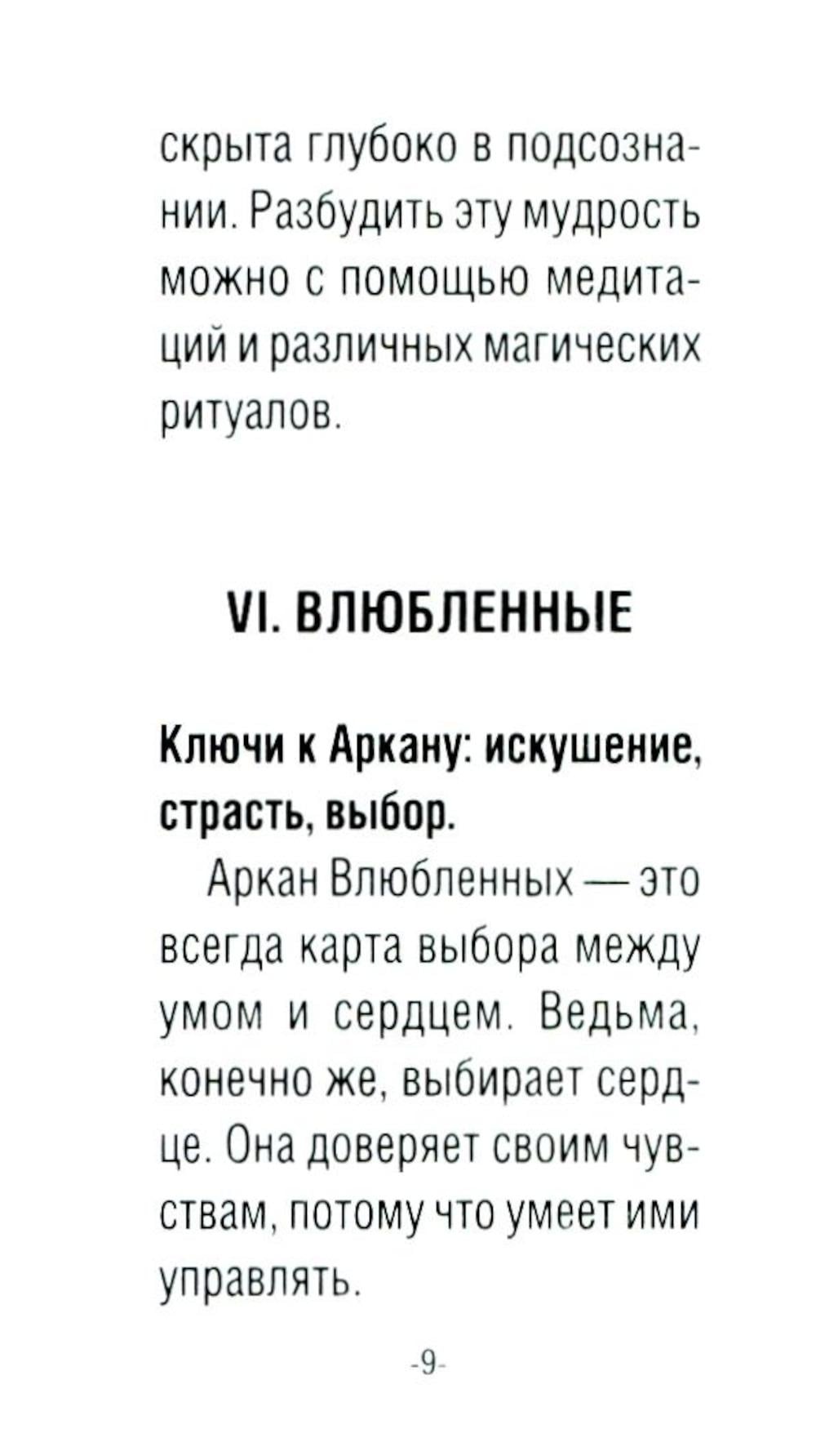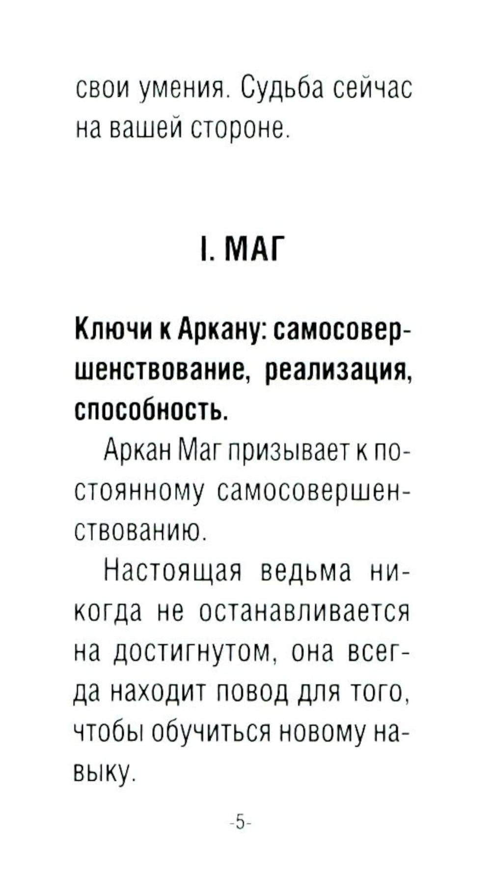 Яркая колода Таро с ведьмочками - это не просто инструмент для гадания, а настоящее приключение в мире, наполненном магией и вдохновением. Эти карты созданы с любовью и вниманием к деталям: остроконечные шляпы, волшебные метлы, веселые героини и магическая атмосфера в каждом изображении. Колода предназначена для тех, кто ищет глубокое понимание себя и окружающего мира через призму магии и интуиции. Красочные иллюстрации помогают установить связь с подсознанием, раскрыть скрытые смыслы и получить ответы на важные вопросы о любви, карьере и духовном развитии. Каждая карта обладает уникальной светлой энергетикой и символикой, что делает гадание вдохновляющим процессом. Колода основана на классической системе Таро Уэйта, но благодаря ведьмочкам она становится милой, забавной и совсем не страшной, поэтому подойдет даже юной предсказательнице. Колода подскажет ответ на волнующие вопросы, подаст знак, предупредит или просто поднимет настроение. Комплект состоит из 78 карт в мини-формате и брошюры-инструкции под размер коробочки. Колода станет отличным вариантом как для начинающих, так и для профессионалов.| Издательство | АСТ |