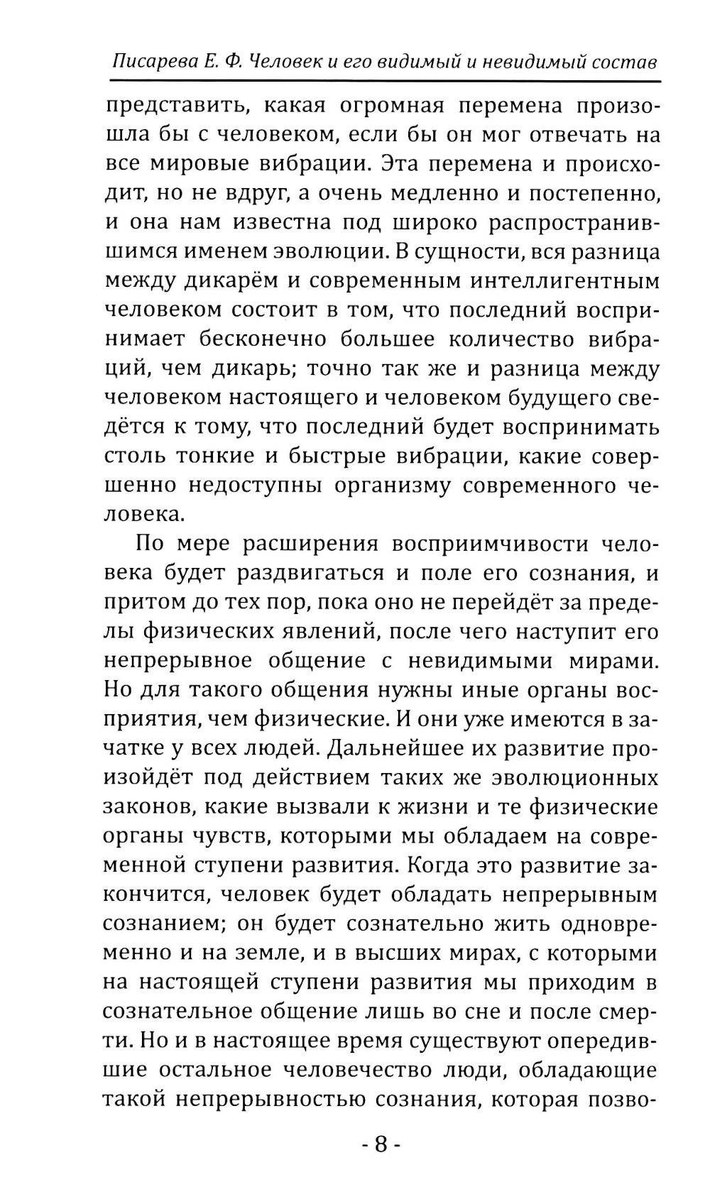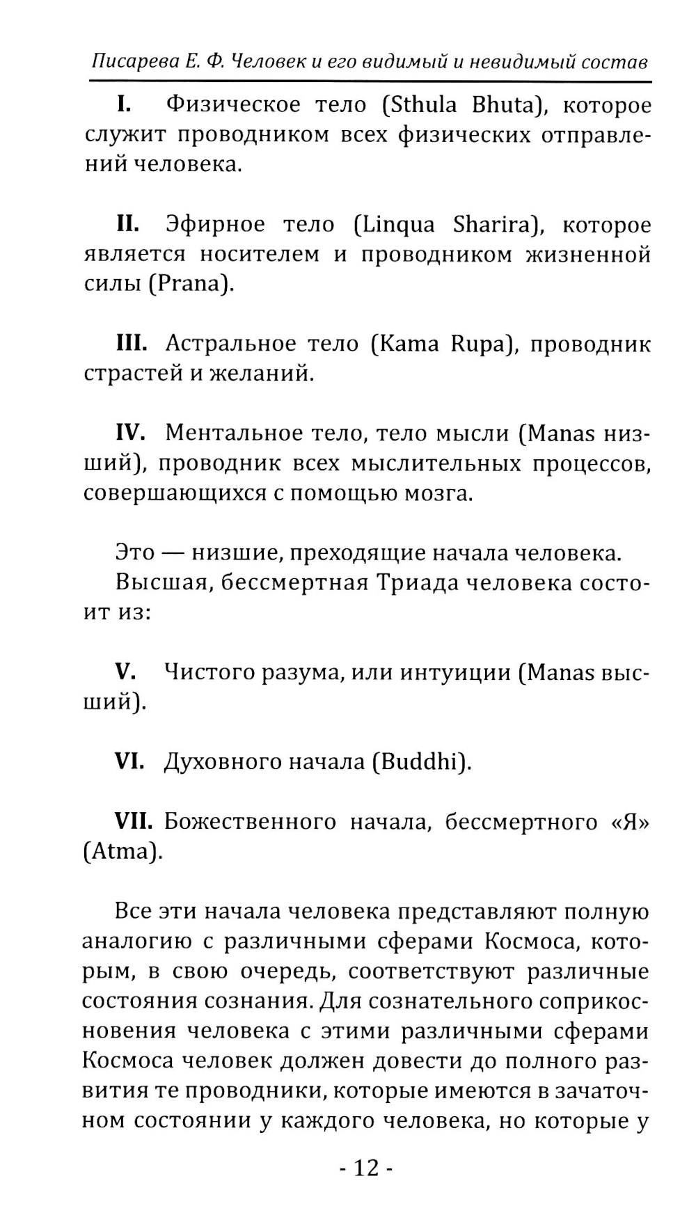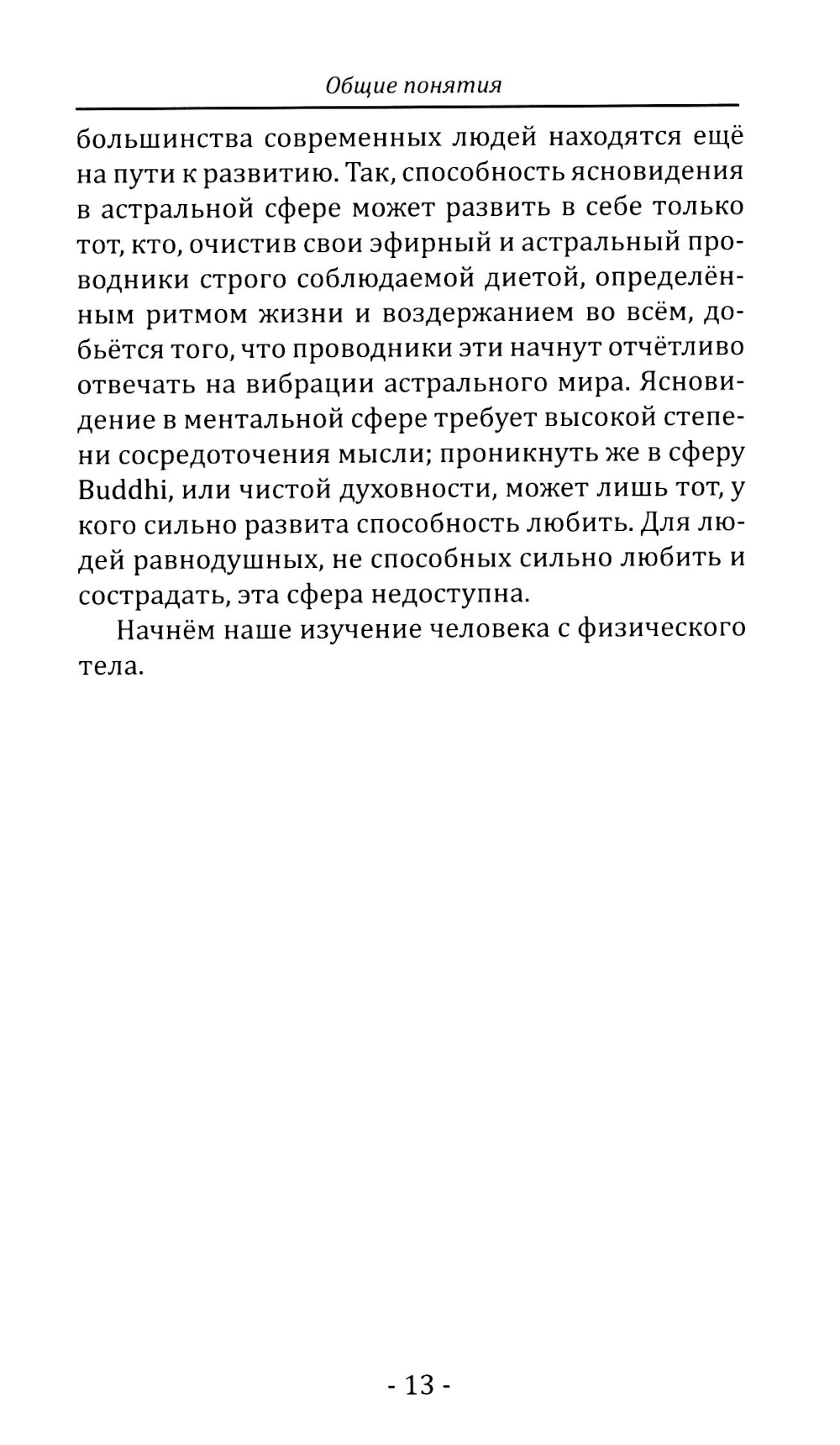 В настоящей брошюре простым и понятным языком рассказывается о строении Тонких и Духовных Тел человека. Брошюра написана Еленой Фёдоровной Писаревой (1853-1944) - одной из ведущих русских теософов, переводчицей и писательницей. Она была председателем Калужского теософского общества, вице-президентом теософского общества России. Книга может быть полезной для широких кругов читателей, интересующихся эзотерикой. Прекрасно подходит для начинающих.| Издательство | Амрита-Русь |