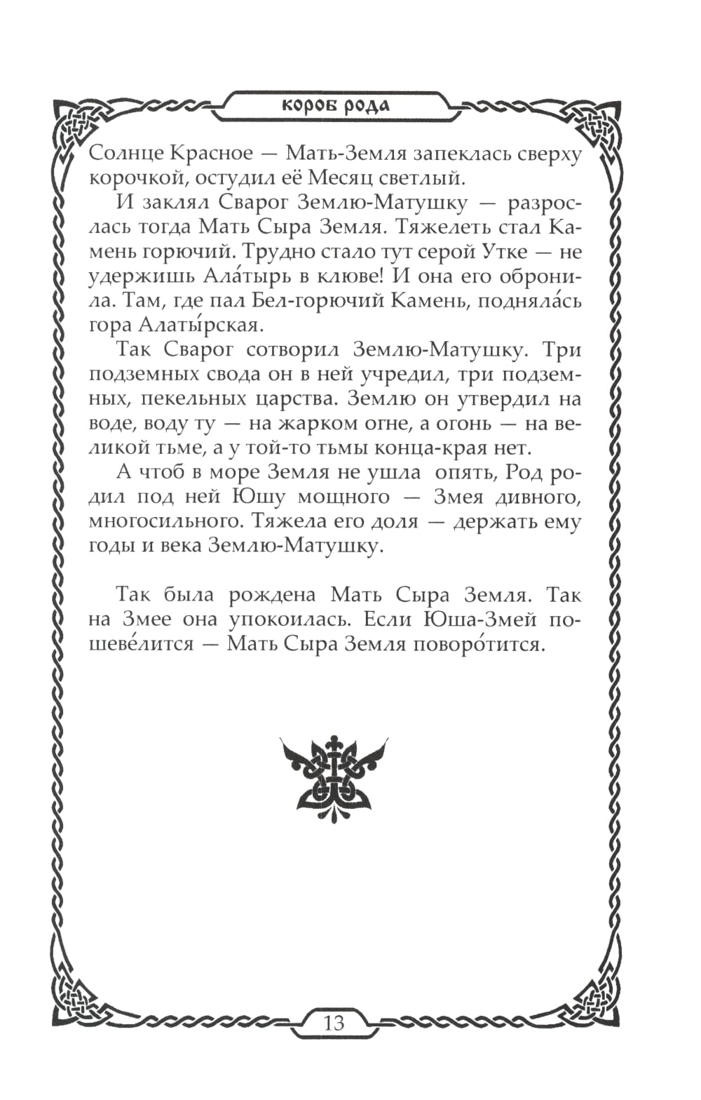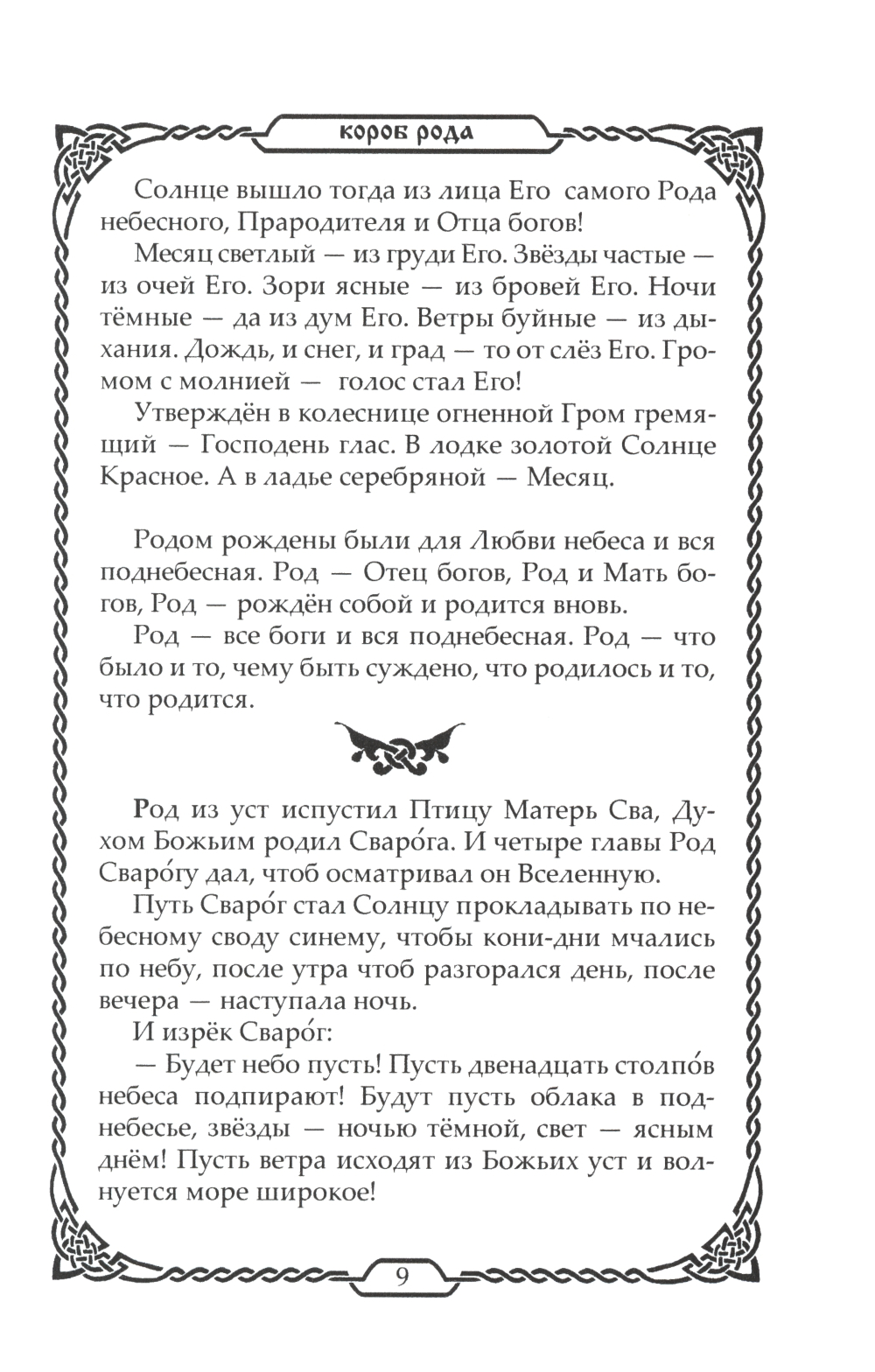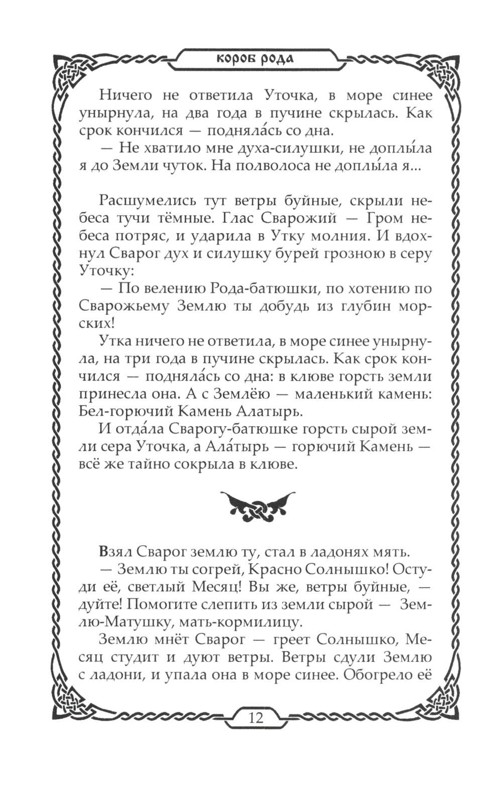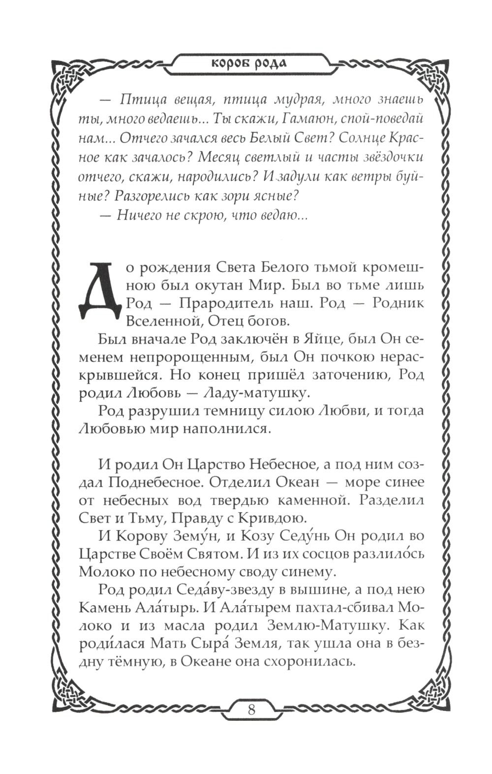 Книга являет собой свод древнейших славянских преданий о Сотворении Мира, о Богах и героях согласно белогорской и Берендеевской традициям. Тексты совраны по славянским устным преданиям, народным книгам. Многие тексты общие для большинства великих ведических и языческих цивилизаций древности и современного мира.| Издательство | Амрита-Русь |