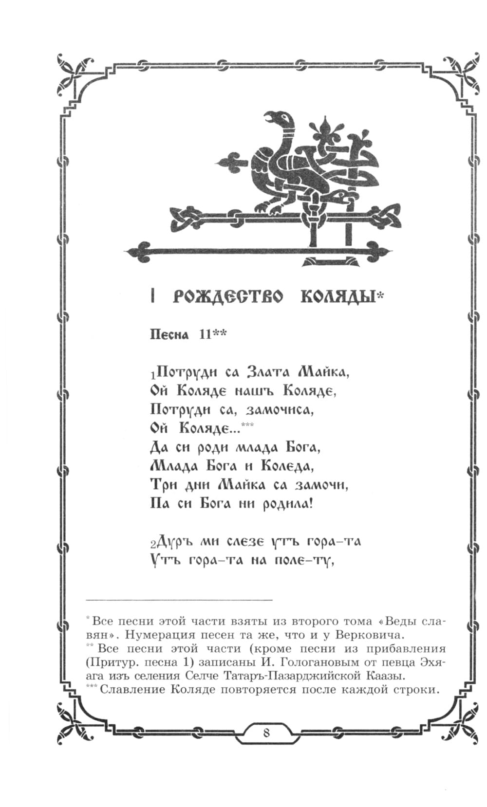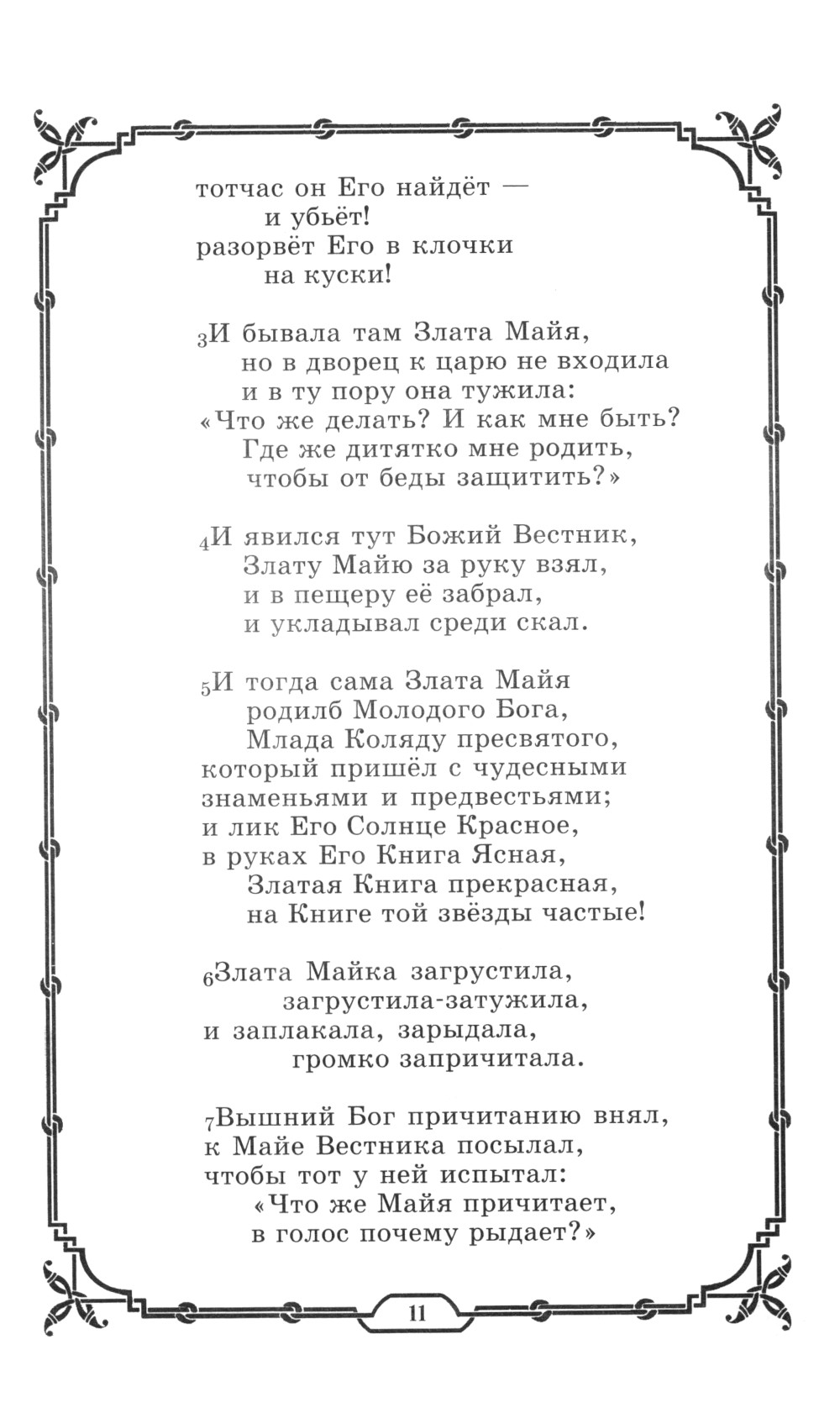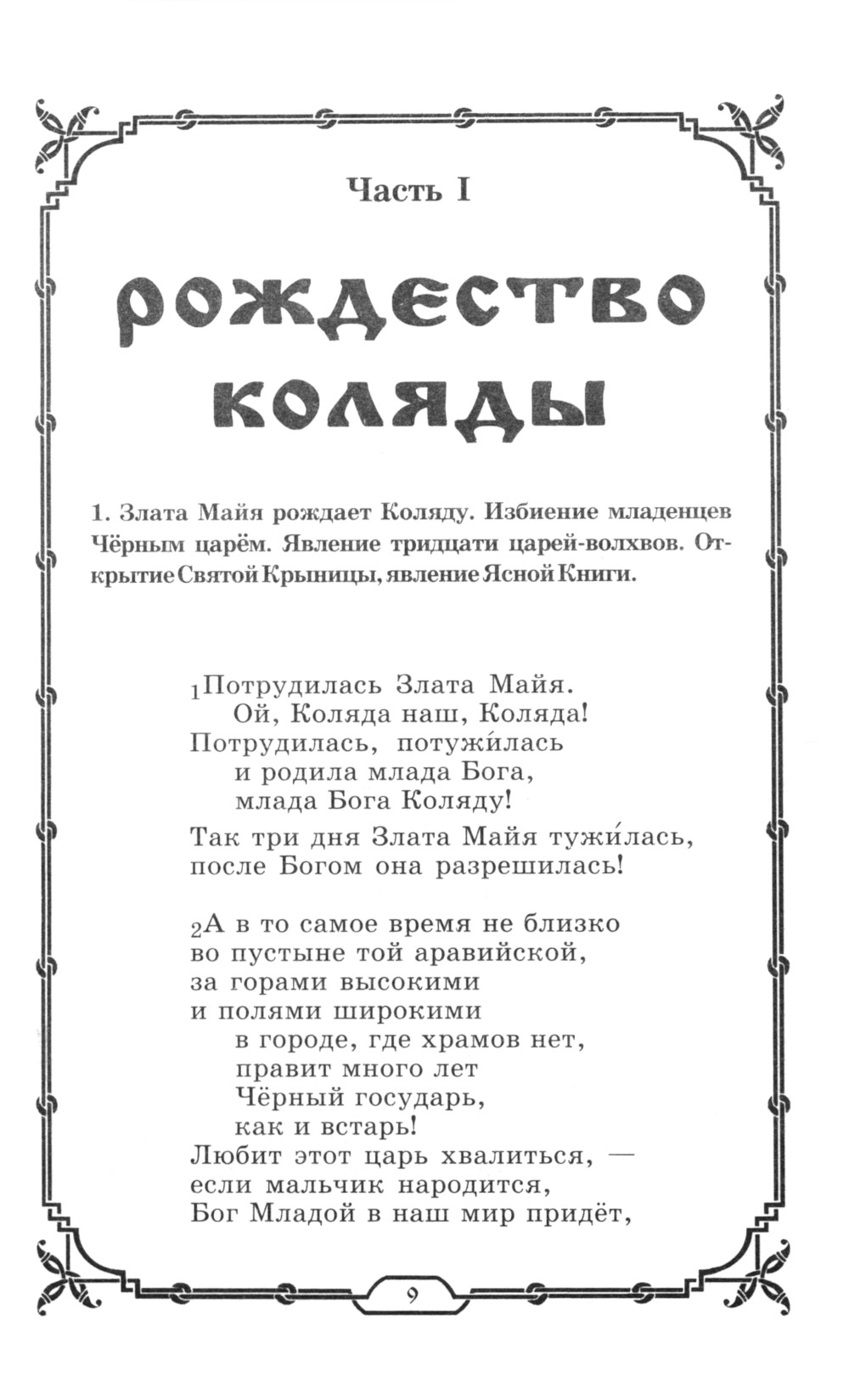Эта книга принадлежит к той же традиции, что и «Книга Велеса». Здесь впервые публикуются русские переводы текстов ведических преданий и песен, собранных в Родопах в середине XIX века южнославянским учёным Стефаном Ильичом Берковичем. Часть этих песен была им опубликована на болгаро-помакском языке в книге «Веда словена». Первый том «Веды словена» вышел в Белграде в 1874 году, а второй - в Санкт-Петербурге в 1881 году. Издание второго тома, а также продолжение работ по сбору ведических славянских преданий осуществлялось на средства императора Александра II и русских ревнителей науки о славянских древностях. Здесь впервые публикуются также песни из третьего тома, оставшегося неизданным в XIX веке.| Издательство | Амрита-Русь |