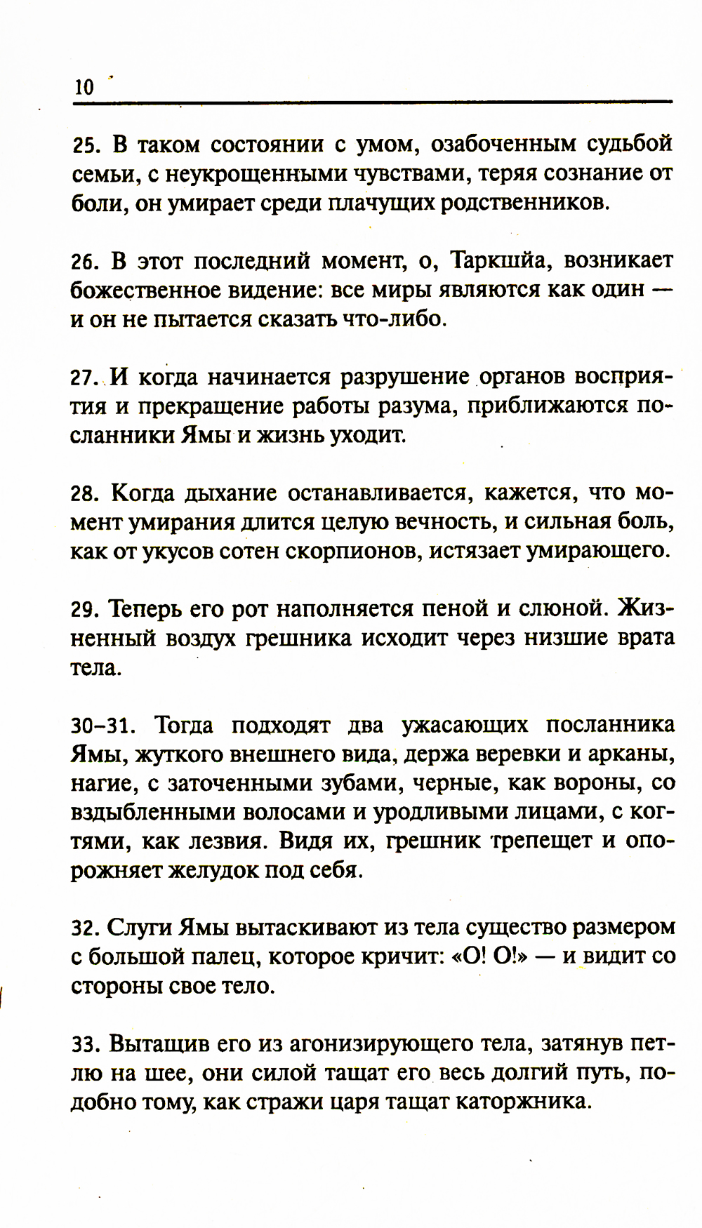Книга представляет собой перевод священного древнеиндийского трактата, содержащего арийскую концепцию загробного мира. В нем описаны: топография адских миров, пути перевоплощения души, мистерии, ведущие к освобождению от кармы и грехов, различные посмертные церемонии, сакральная космогония и основные доктрины ведической метафизики.| Издательство | Амрита-Русь |