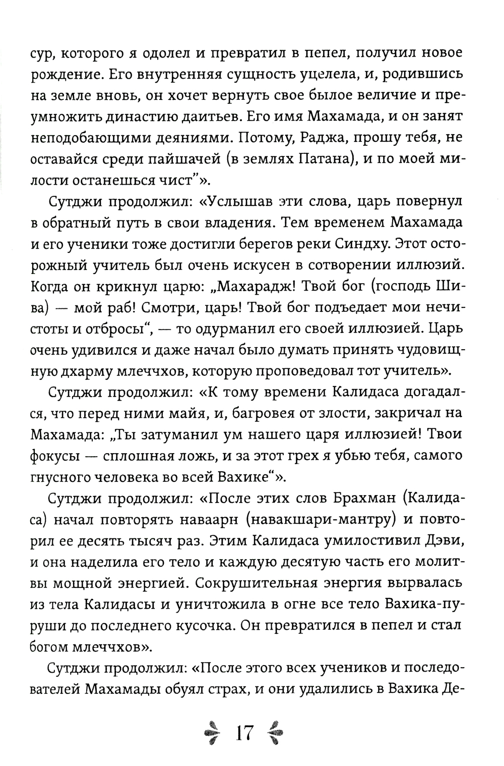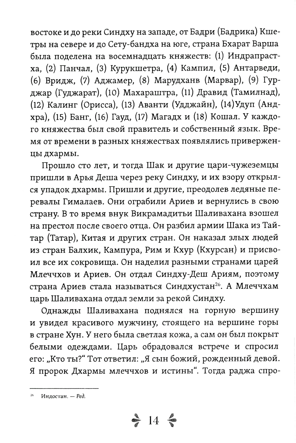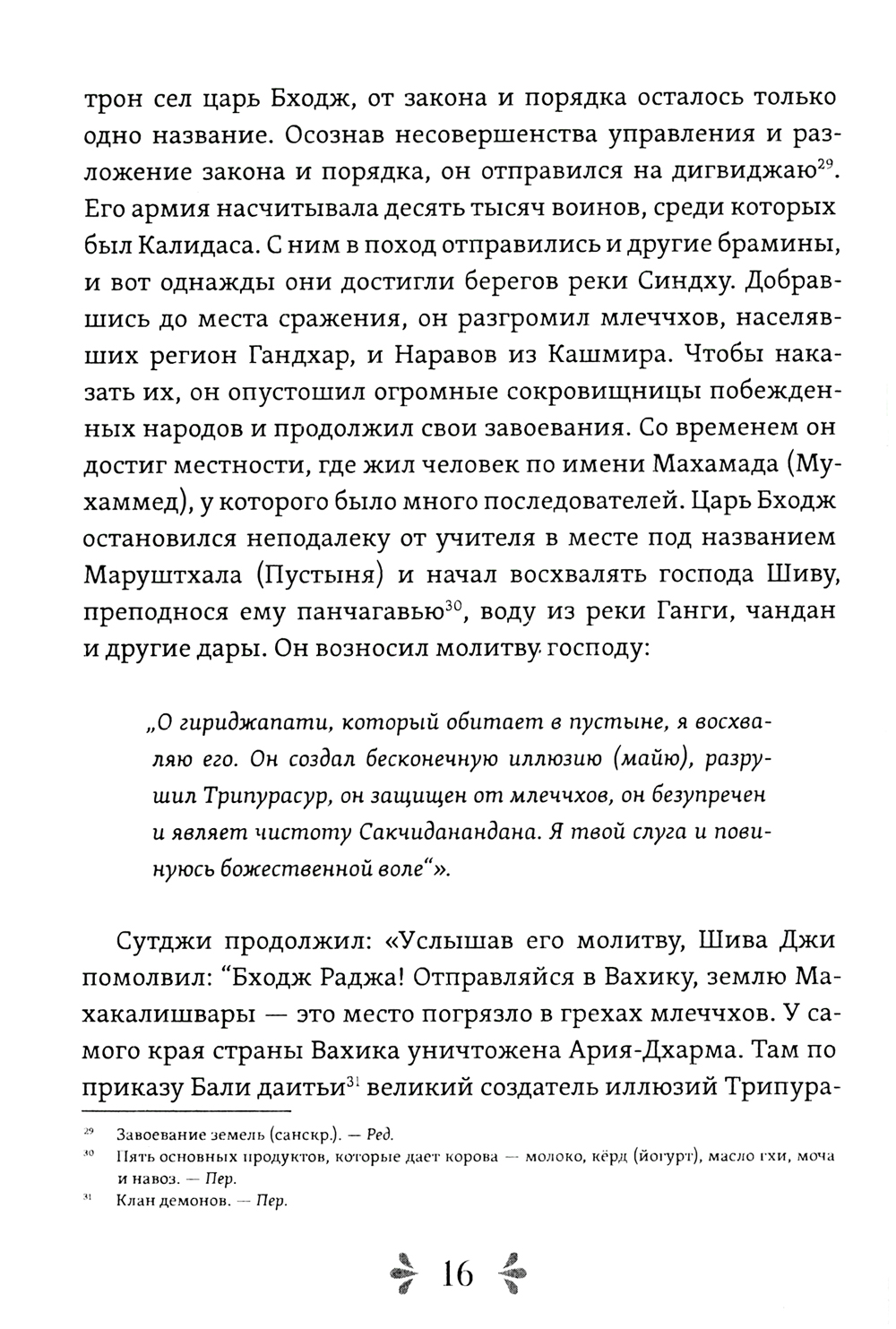 Традиционная точка зрения гласит, что «Бхавишья-пурана» - это древнее ведическое писание, в котором содержатся удивительные пророчества о событиях, которые в реальности произошли на земле Индии во II тысячелетии нашей эры. По мнению же учёных, дошедший до нас текст «Бхавишья-пураны» представляет собой сборник материалов разных времён - от очень древних до сравнительно недавних. Тем не менее, эта пурана пользуется большой популярностью у всех тех, кто интересуется индийской религией и историей. Недаром в списке маха-пуран она занимает почётное третье место вслед за «Агни-пураной» и «Бхагавата-пураной». В настоящем издании представлен перевод третьего раздела третьей части «Бхавишья-пураны» (часть III «Пратисар-га-парва», раздел 3 «Уттара-кханда»). В нём вы встретитесь с блистательными богами и легендарными героями, которые сражаются и побеждают в нелёгких боях за дхарму, восстанавливая на Земле истину, добро и справедливость.| Издательство | Амрита-Русь |