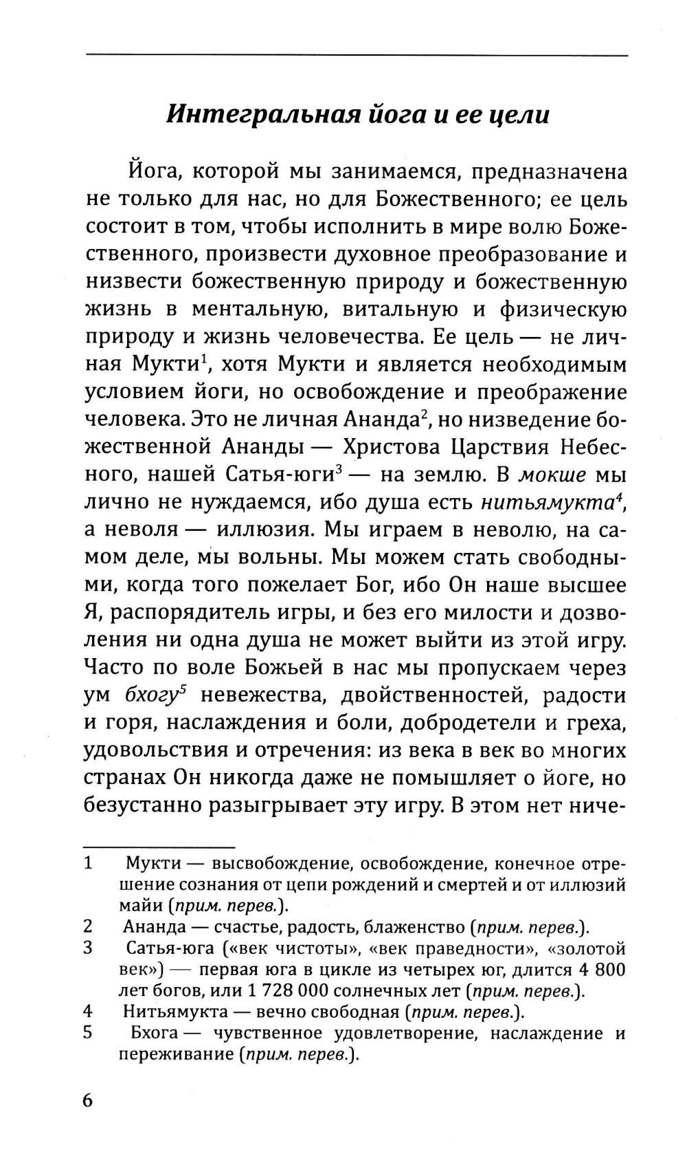 Данное издание посвящено интегральной йоге, которая акцентирует значение индивидуальности каждого человеческого сознания и не ограничивает практикующих набором правил для реализации йогического опыта. Согласно учению Шри Ауробиндо, йогическое устремление через деятельность, медитацию, любовь, преданность и открытость Божественному сознанию является движущей силой для преобразования сознания и трансформации человеческой природы.| Издательство | Амрита-Русь |