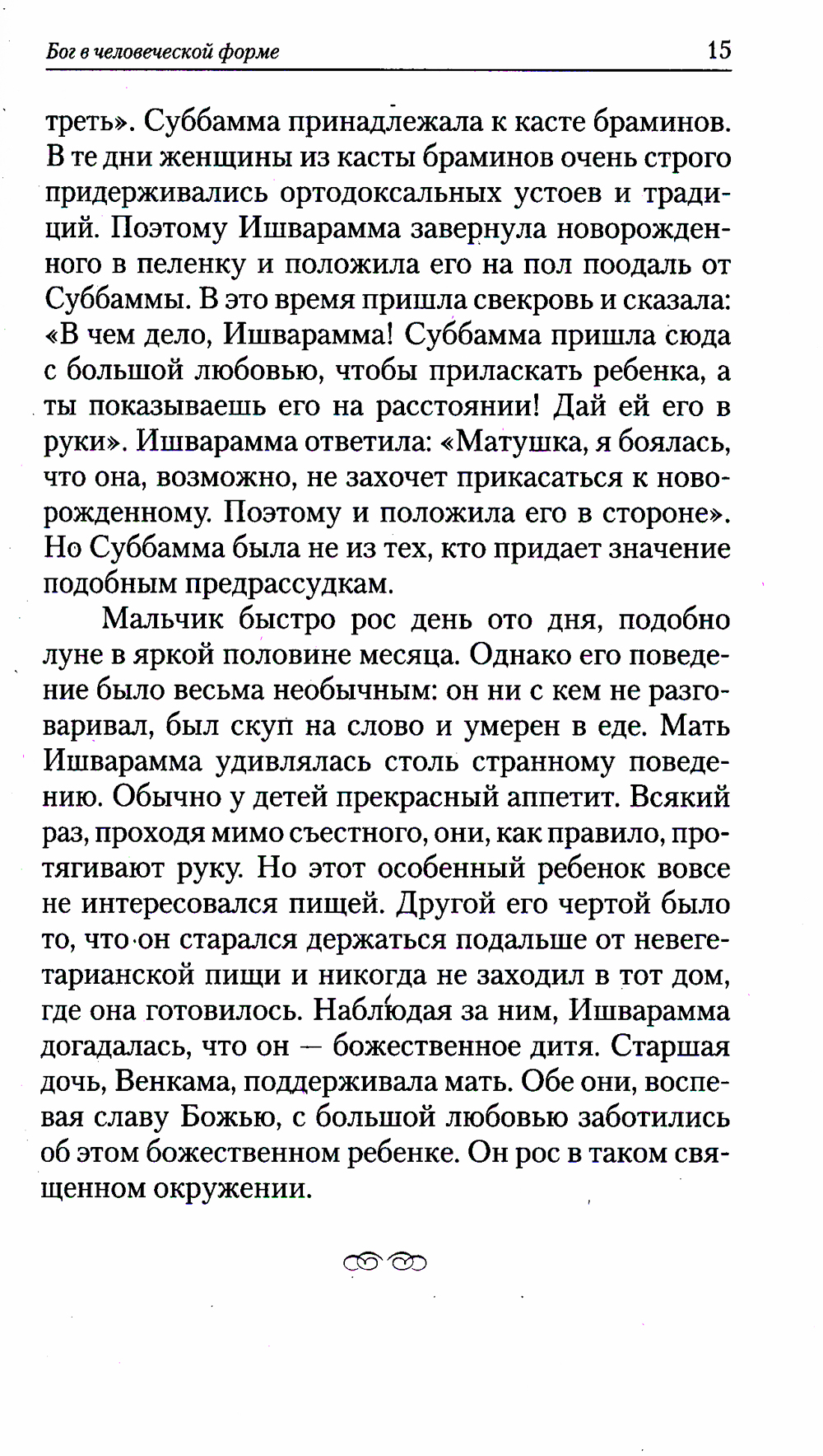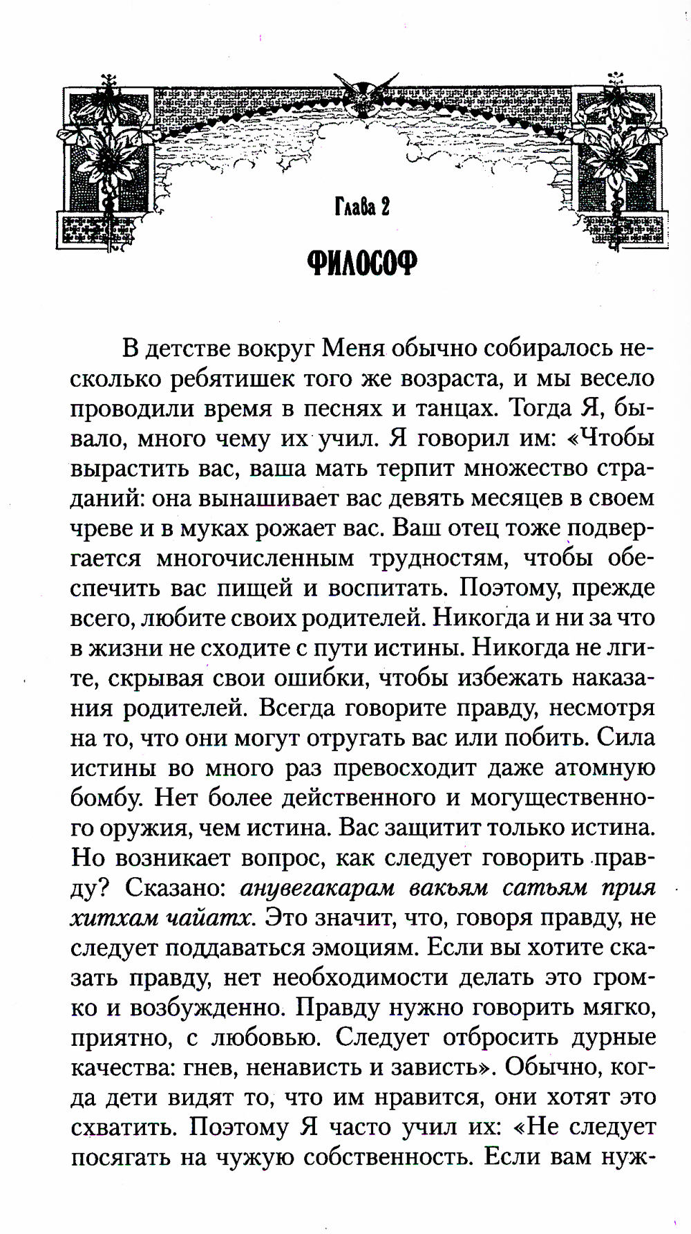 О Сатья Саи Бабе написаны сотни книг. Каждый, кто соприкоснулся с Ним, спешит поделиться, устно или письменно, невиданными доселе впечатлениями и переживаниями. Удивительных историй и изменившихся судеб столько же, как и людей, оказавшихся на Его орбите. У каждого свои понятия, свои точки отсчета, и иногда полет фантазии незаметно уводит рассказчика от истины. Тем ценнее для нас слова «из первых рук» - рассказ о себе самого Аватара. Каждый момент этой жизни, поведанный им самим, бесценен. Его рассказы о. своем детстве, о школьных годах вкраплены в Его многочисленные речи, то тут, то там, всплывают удивительные эпизоды уникальной жизни божественного существа, родившегося в мире людей. В этой книге они собраны воедино и даны нам на хранение - это зерна, отделенные от плевел, «чистая правда» от Аватара.| Издательство | Амрита-Русь |