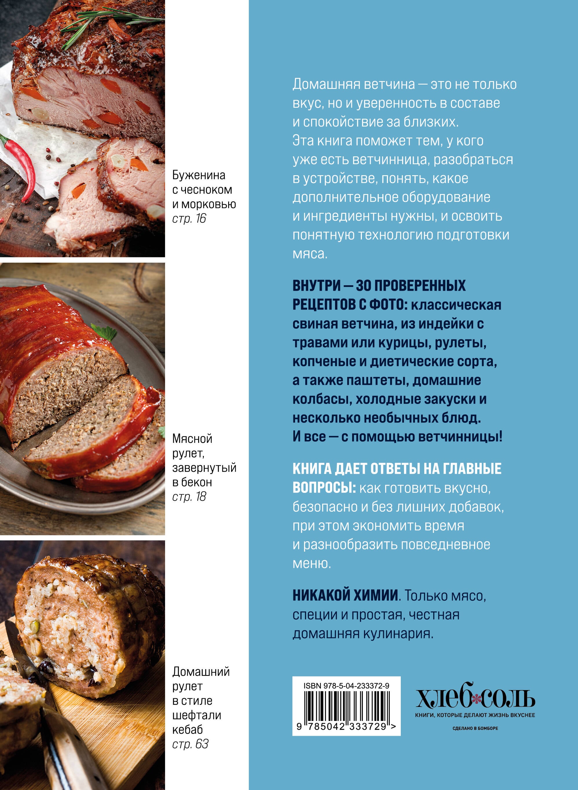 Домашняя ветчина - это не только про вкус. Это про уверенность в составе, спокойствие за семью и то самое чувство, когда знаешь: всё сделано своими руками. Эта книга - удобный и понятный гид по работе с ветчинницей для тех, кто уже купил гаджет и хочет раскрыть его возможности на все 100%. В первой части - подробное объяснение, как устроена ветчинница, какую выбрать, что нужно из дополнительного оборудования, какие ингредиенты подходят лучше всего и как подготовить мясо. Пошаговая технология описана так, что почувствовать себя «профи» сможет каждый. Дальше - самое вкусное: десятки рецептов с фото. Классическая свиная ветчина, индейка с травами, куриная с кусочками, рулеты, ветчина с добавками, диетические варианты, гипоаллергенная ветчина без соли, копчёные версии, паштеты, домашние колбасы - а ещё холодные закуски, рулеты и даже несколько необычных блюд. Эта книга отвечает на главный запрос хозяек: как готовить вкусно, безопасно и без лишних добавок. Она экономит время, расширяет меню и вдохновляет на новые домашние хитрости. Внутри книги: - подробное руководство по выбору, устройству и использованию ветчинницы; - 40+ проверенных рецептов с пошаговыми фотографиями; - классические, диетические, копчёные и праздничные варианты; - паштеты, колбасы, рулеты, холодные блюда и даже десерты; - советы по хранению, подаче и использованию ветчины в других блюдах. Никакой химии. Никаких сомнительных добавок. Только мясо, специи и ваше кулинарное мастерство.| Издательство | ООО "Издательство "Эксмо" |