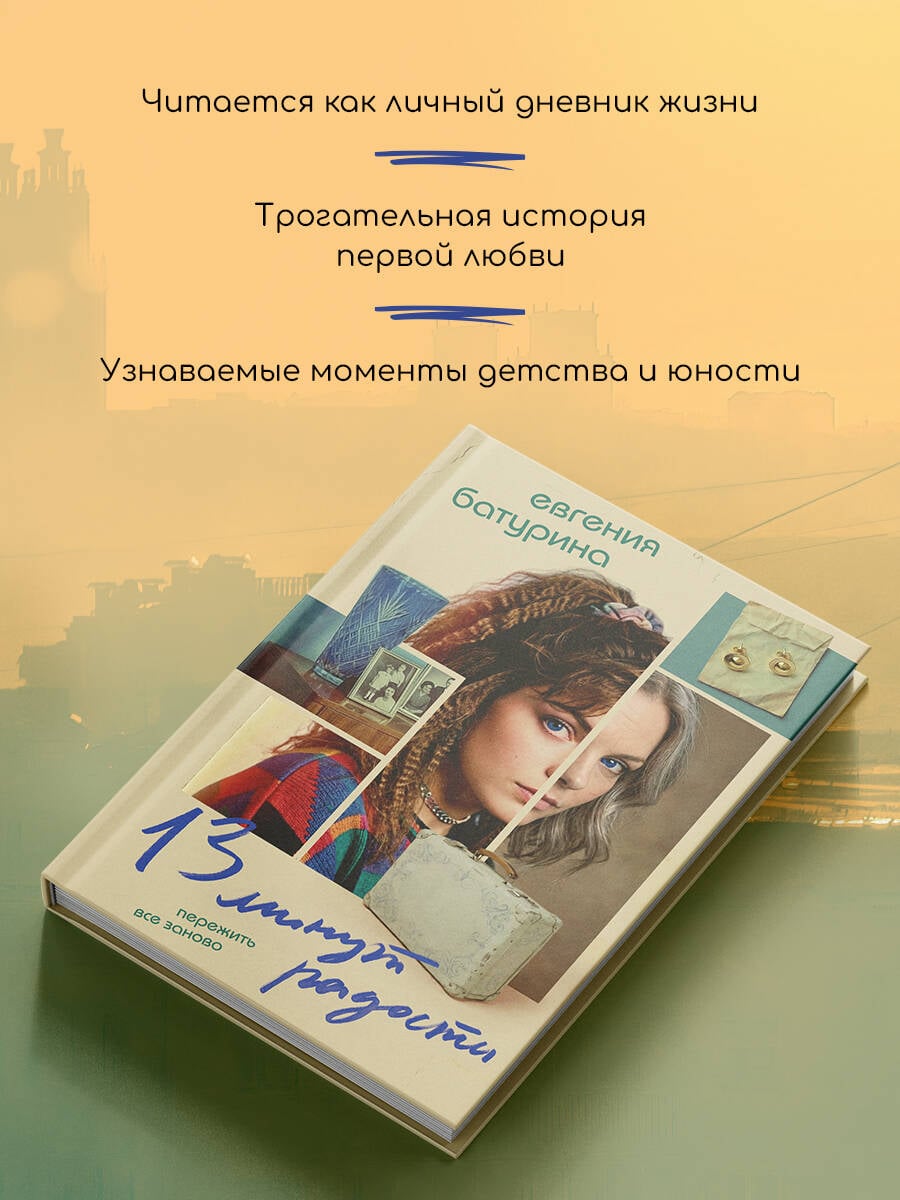 Москва, 1990-2000-е: эпоха перемен, музыки на кассетах и студенческих приключений. В этом мире живет Ефросинья Василева, которая убеждена, что радость - не её конёк. И всё же за всю жизнь ей удалось пережить как минимум 24 мгновения настоящего счастья - редких, ярких, щемящих. Перед смертью Ефросинья проживает каждый из них заново, один за другим. В первой части дилогии Ефросинья делится 13 минутами острой радости: от детских игр с белым чемоданом и трофейного батончика Mars до первых школьных влюбленностей, учебы на журфаке МГУ и настоящей дружбы. "13 минут радости" - светлая, трогательная и ироничная история взросления, полная ностальгических деталей и маленьких чудес, которые остаются с нами навсегда.| Издательство | ООО "Издательство "Эксмо" |